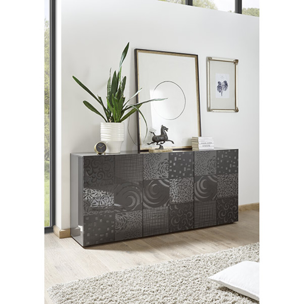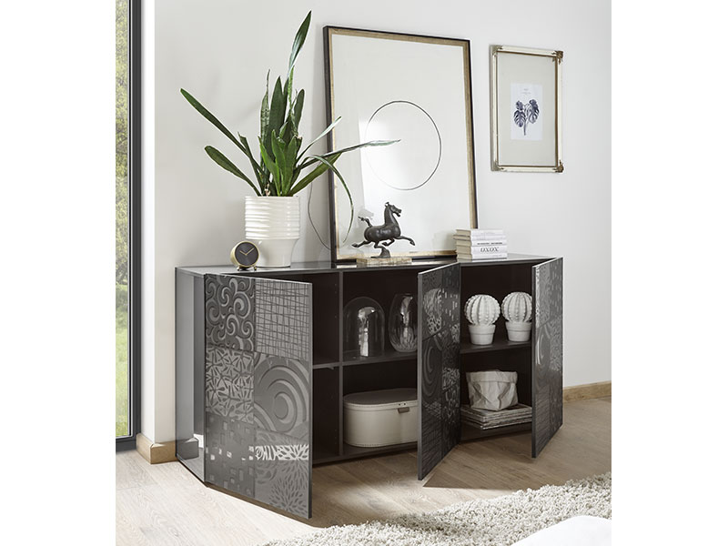 Bahut 3 portes Miranda laqué grise sérigraphié