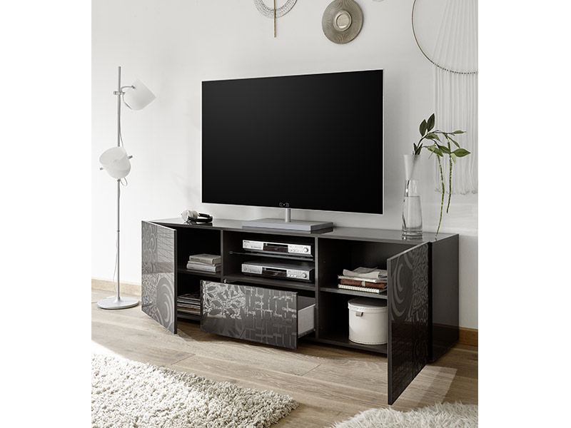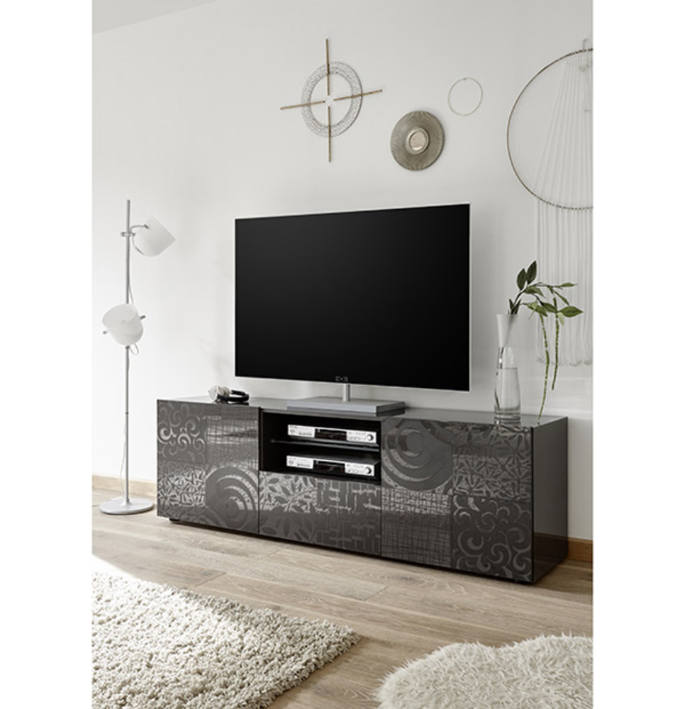 Meuble tv gm Miranda laqué grise sérigraphié