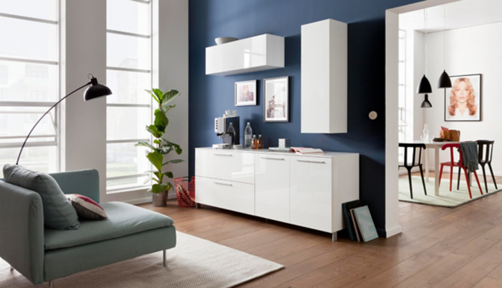 Commode 1 abattant 3 tiroirs Modello blanc brillant