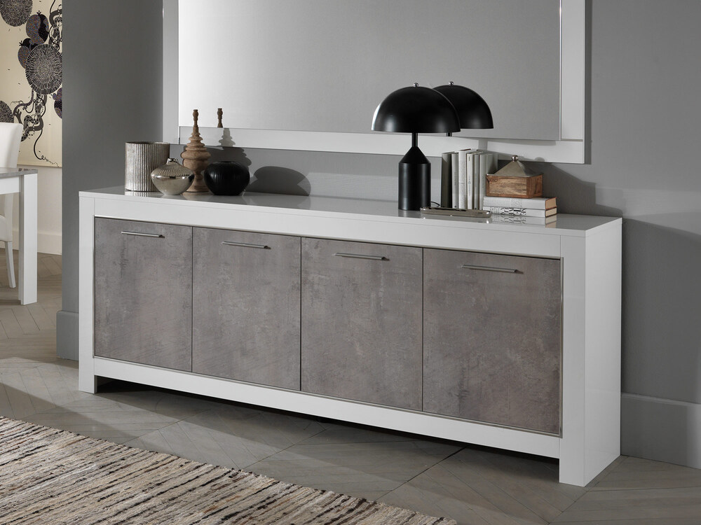 Le bahut 4 portes Modena blanc et béton est le résultat du savoir-faire italien en matière de meubles. Basika vous fait bénéficier d’une garantie de 2 ans à l’achat.