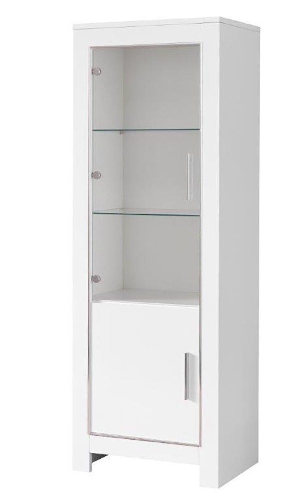 Optez pour un style raffiné avec la vitrine Modena laquée en coloris blanc. D’un design attrayant, cette colonne vous offre aussi un espace de rangement supplémentaire, afin de mieux répondre à vos besoins.