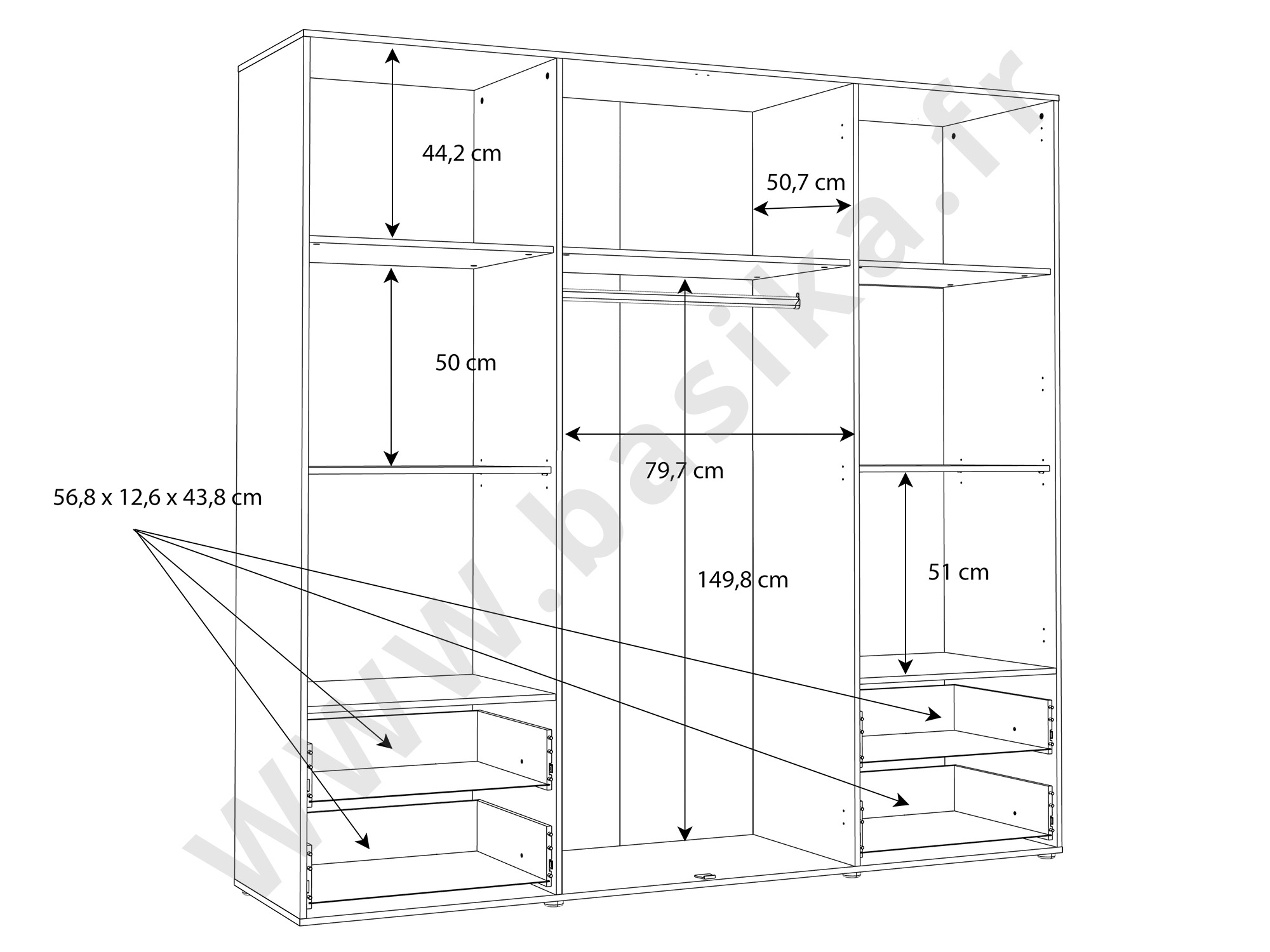 Aménagement intérieur: 1 tringle + 5 tablettes.