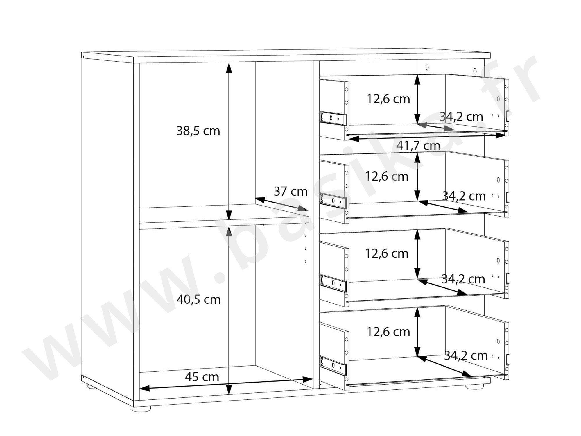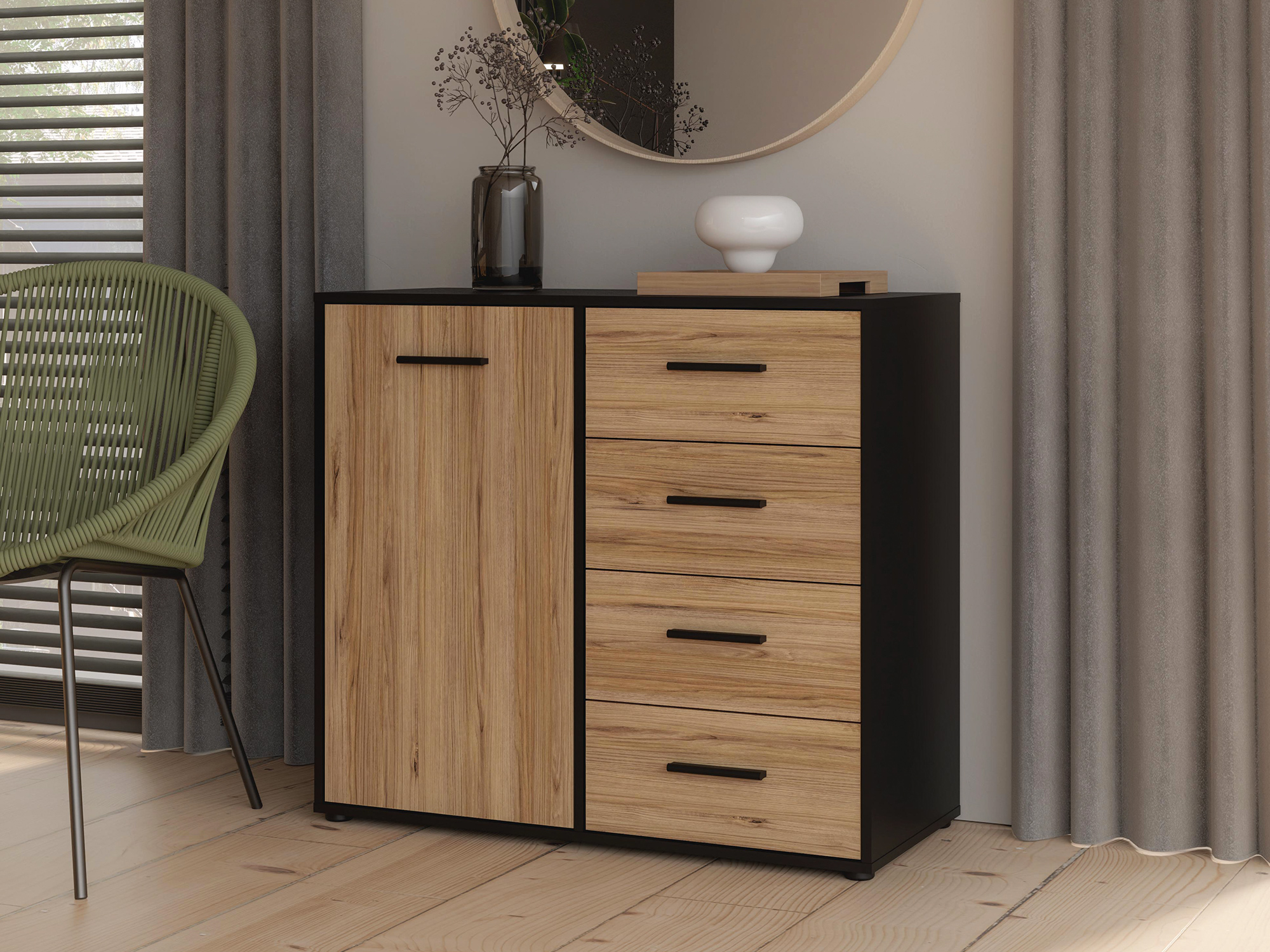 Commode 1 porte 4 tiroirs Mokkaro
