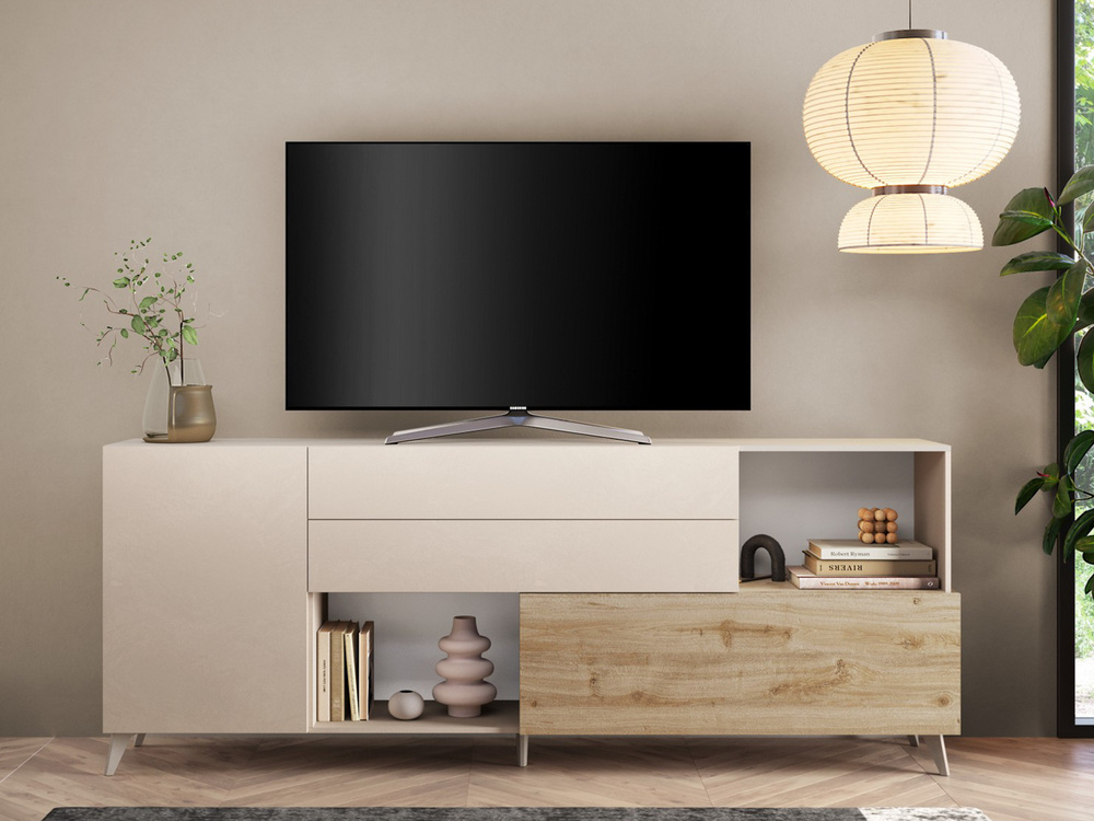 Enfilade 1 porte, 1 abatant et 2 tiroirs et 2 niches.