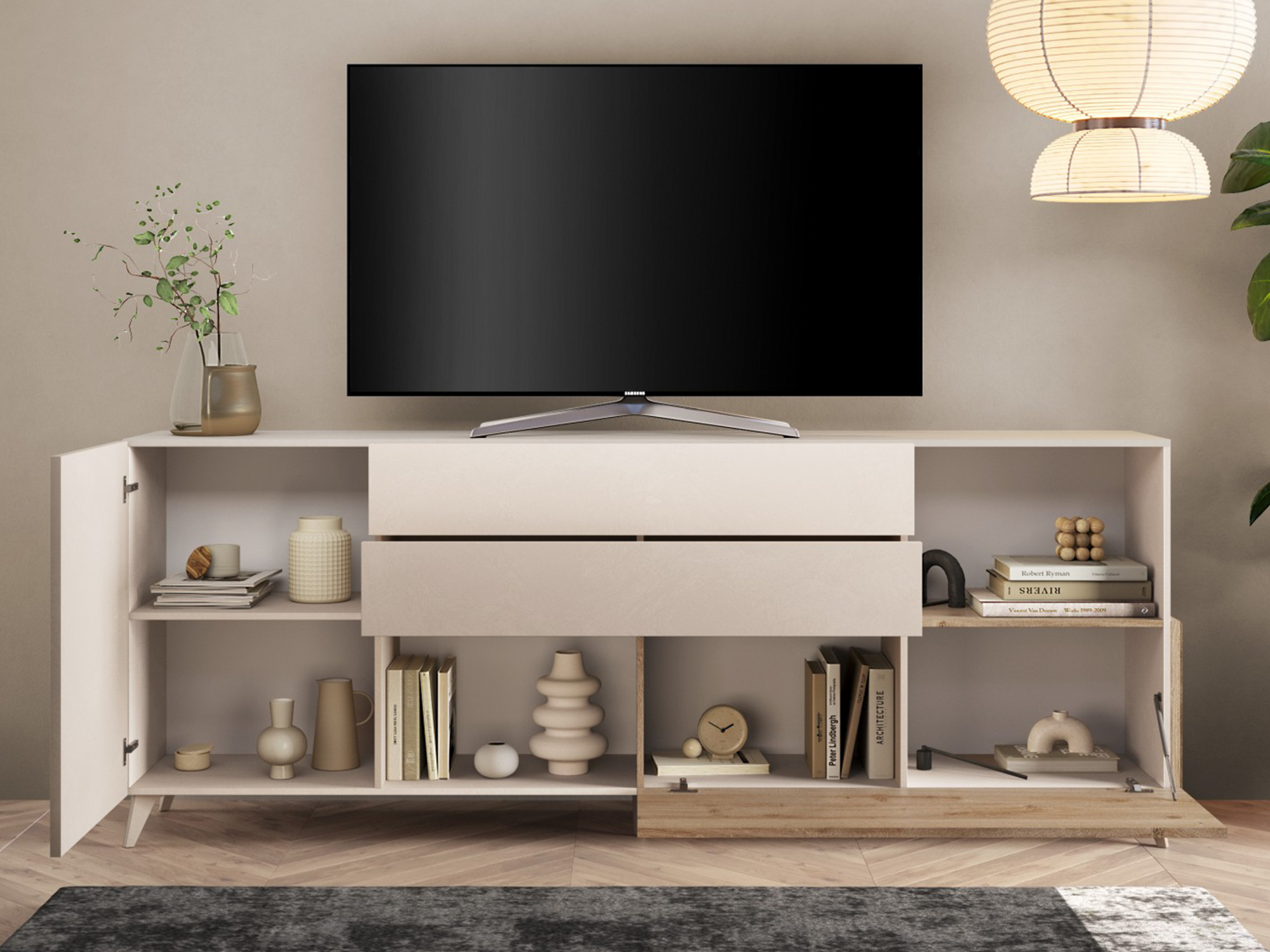 Bahut 1 porte 1 abattant 2 tiroirs Monaco gris clair/chene