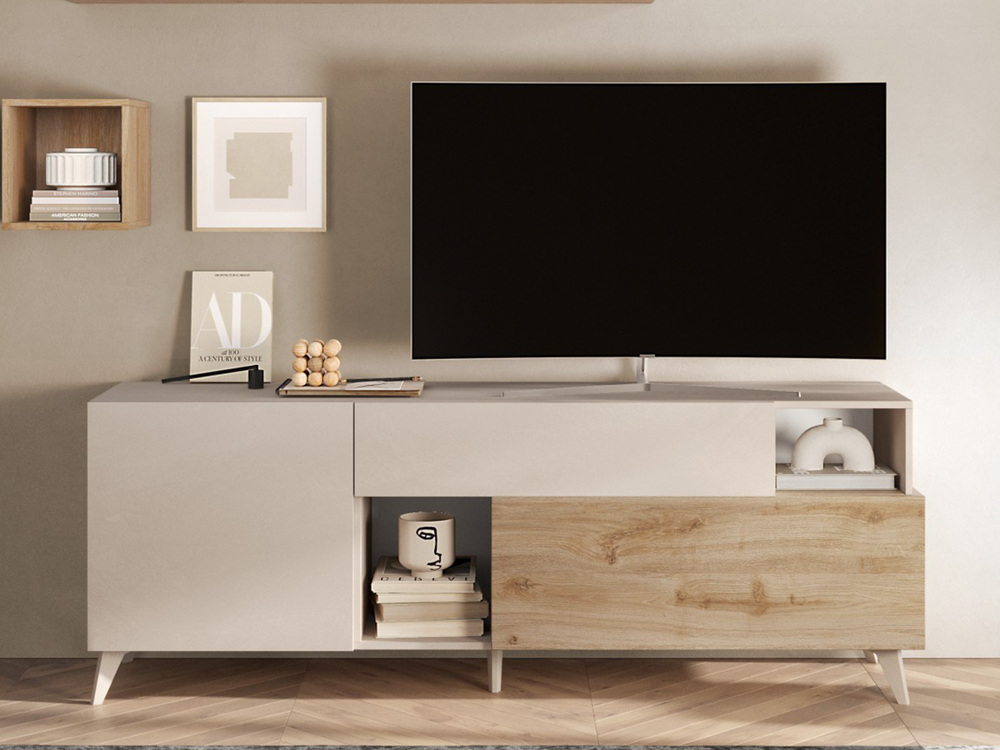 Meuble TV 1 porte, 1 abattant et 1 tiroir et 2 niches.