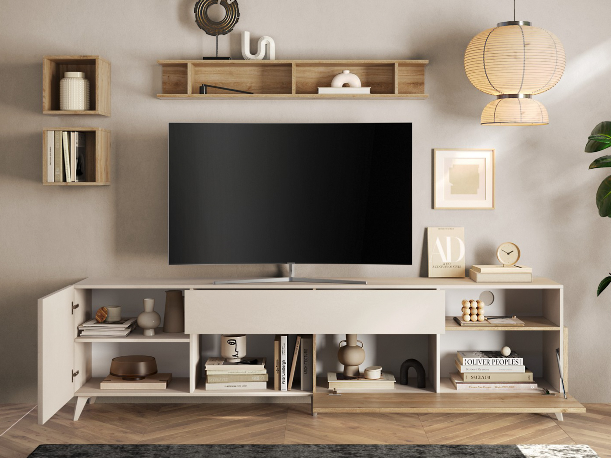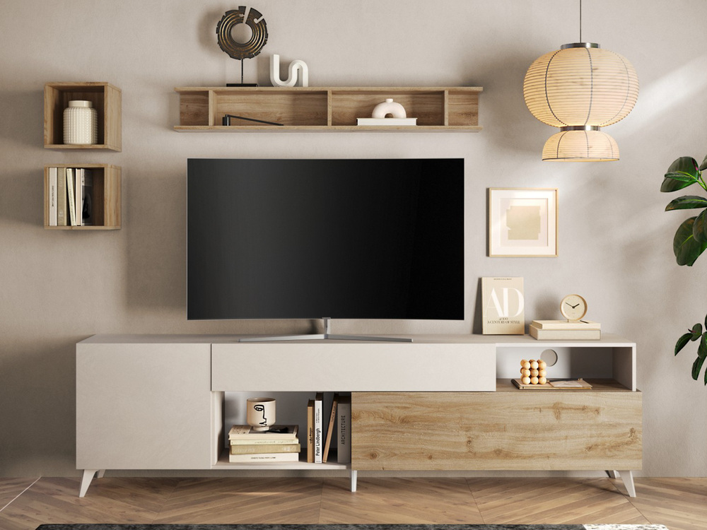 Meuble TV 1 porte, 1 abattant et 1 tiroir et 2 niches.