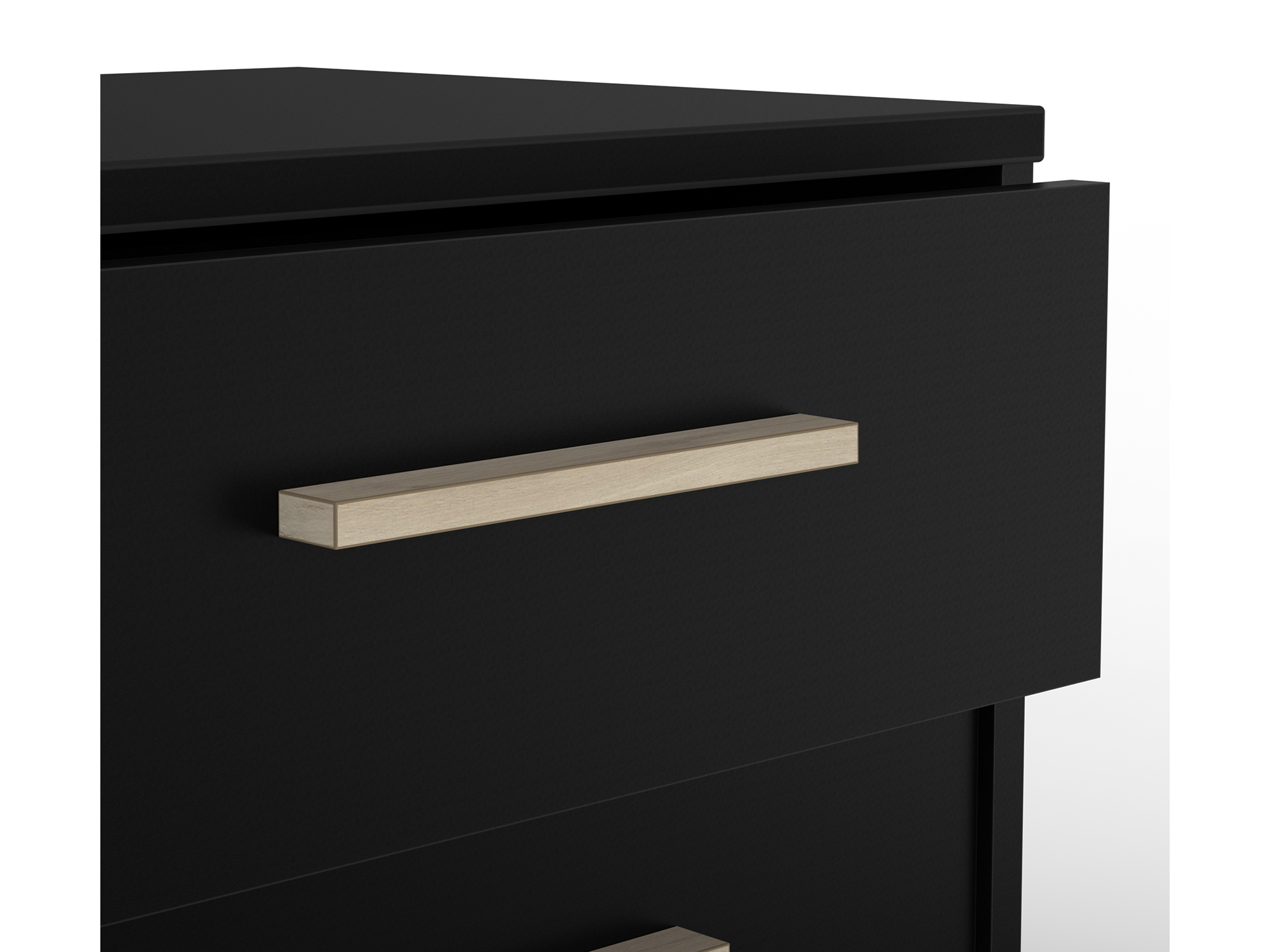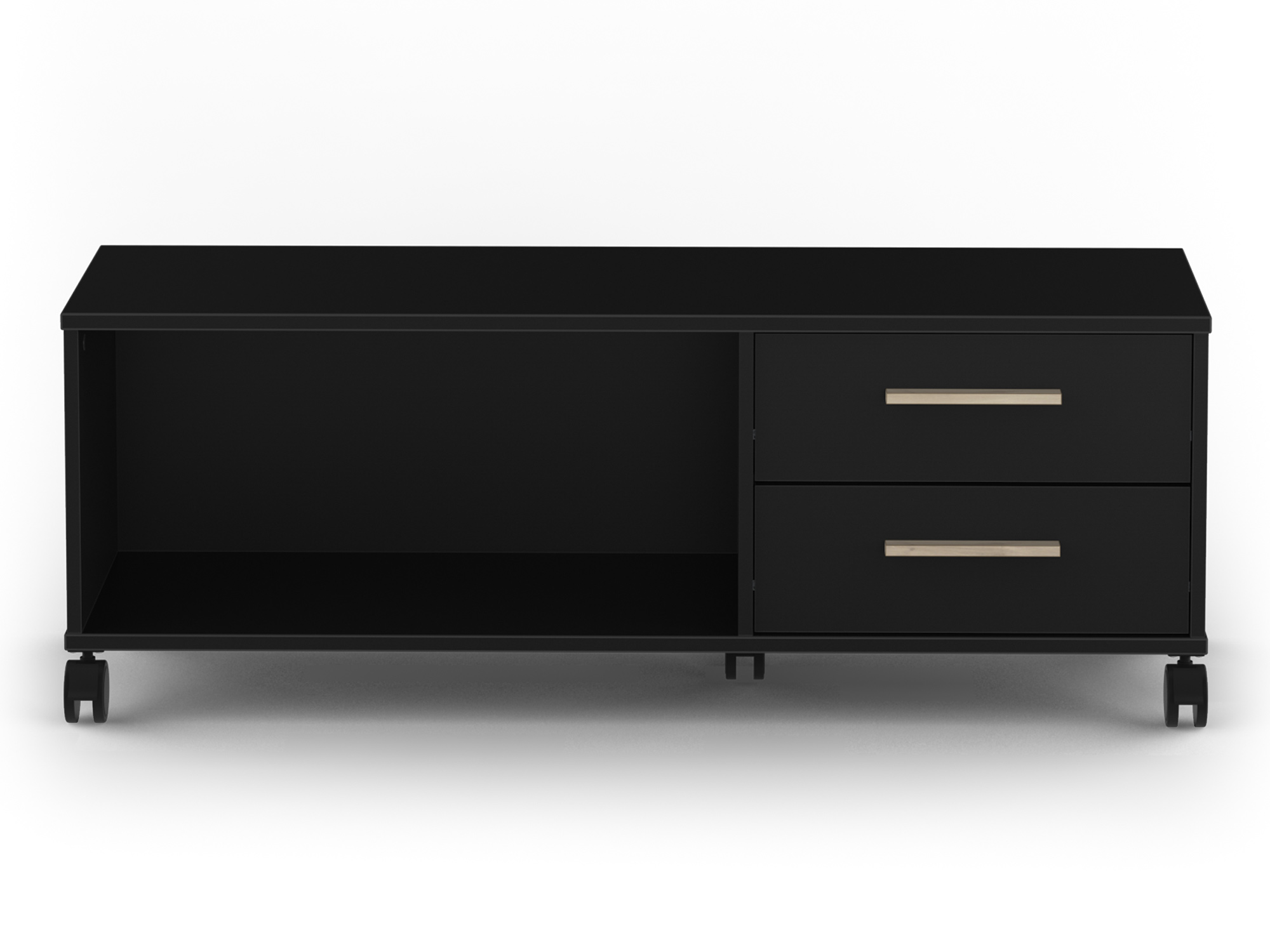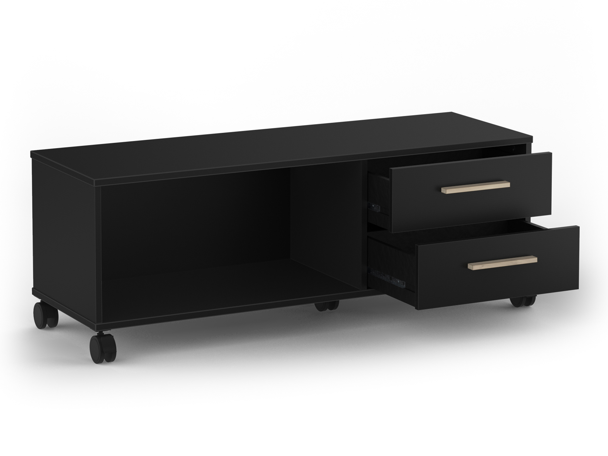 mm (dessus et fond). Décor mélamine noir. 2 tiroirs montés sur coulisses à billes ayant une dimension
