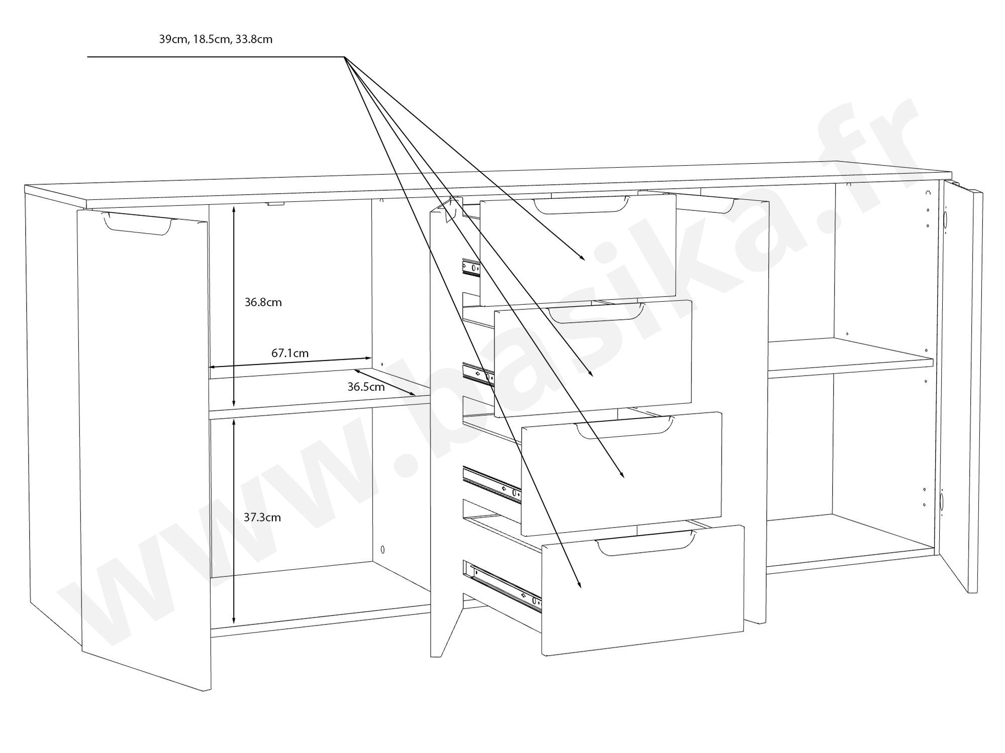 Bahut 4 portes 4 tiroirs Moreno