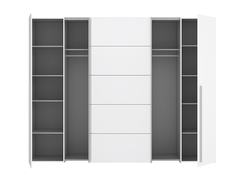 Armoire 2 portes coulissantes et 2 portes battantes.
