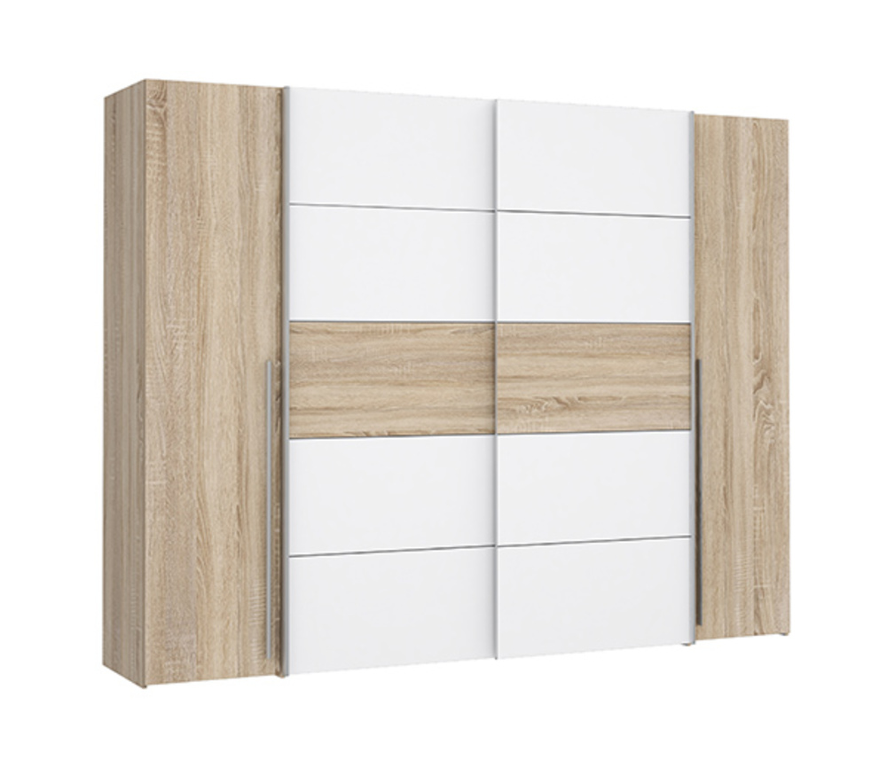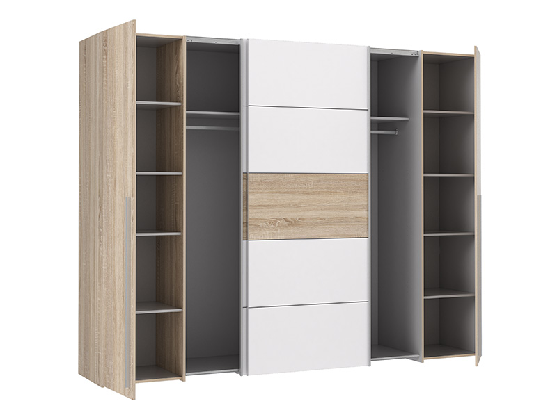 Armoire 2 portes coulissantes et 2 portes battantes.