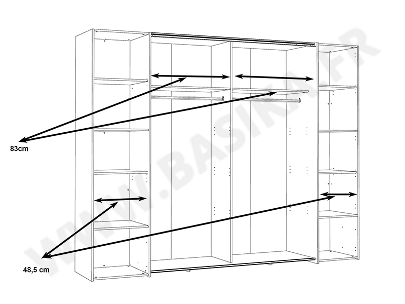 Aménagement intérieur: 2 tringles + 4 tablettes.