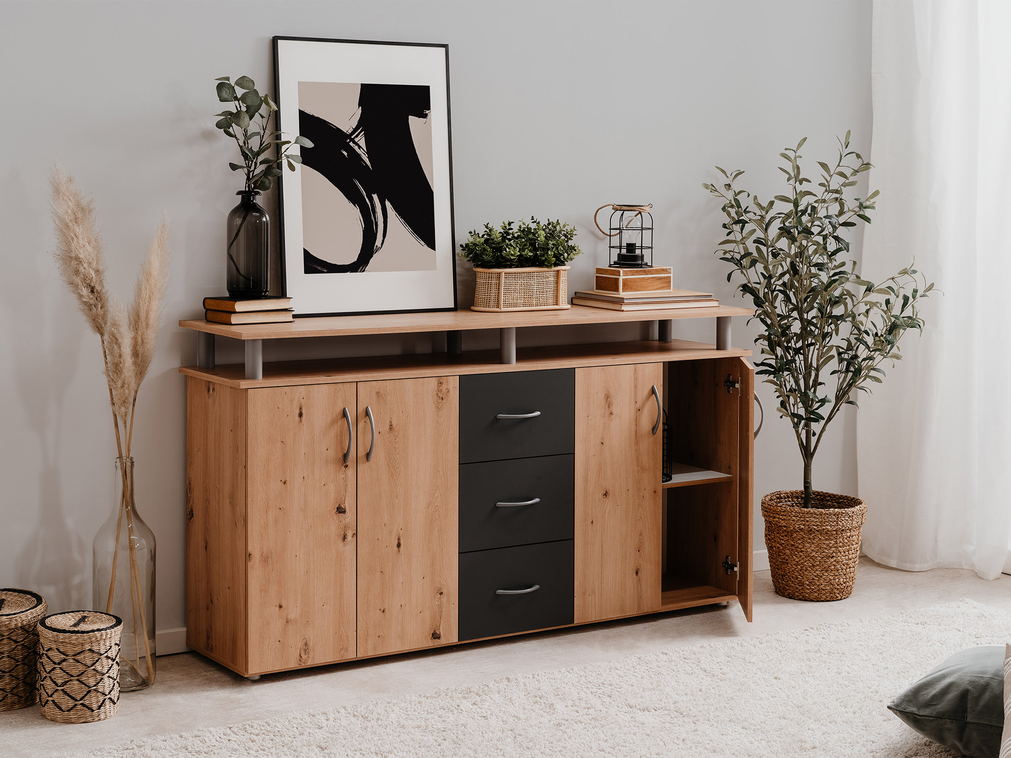 Bahut 4 portes 3 tiroirs Nevada