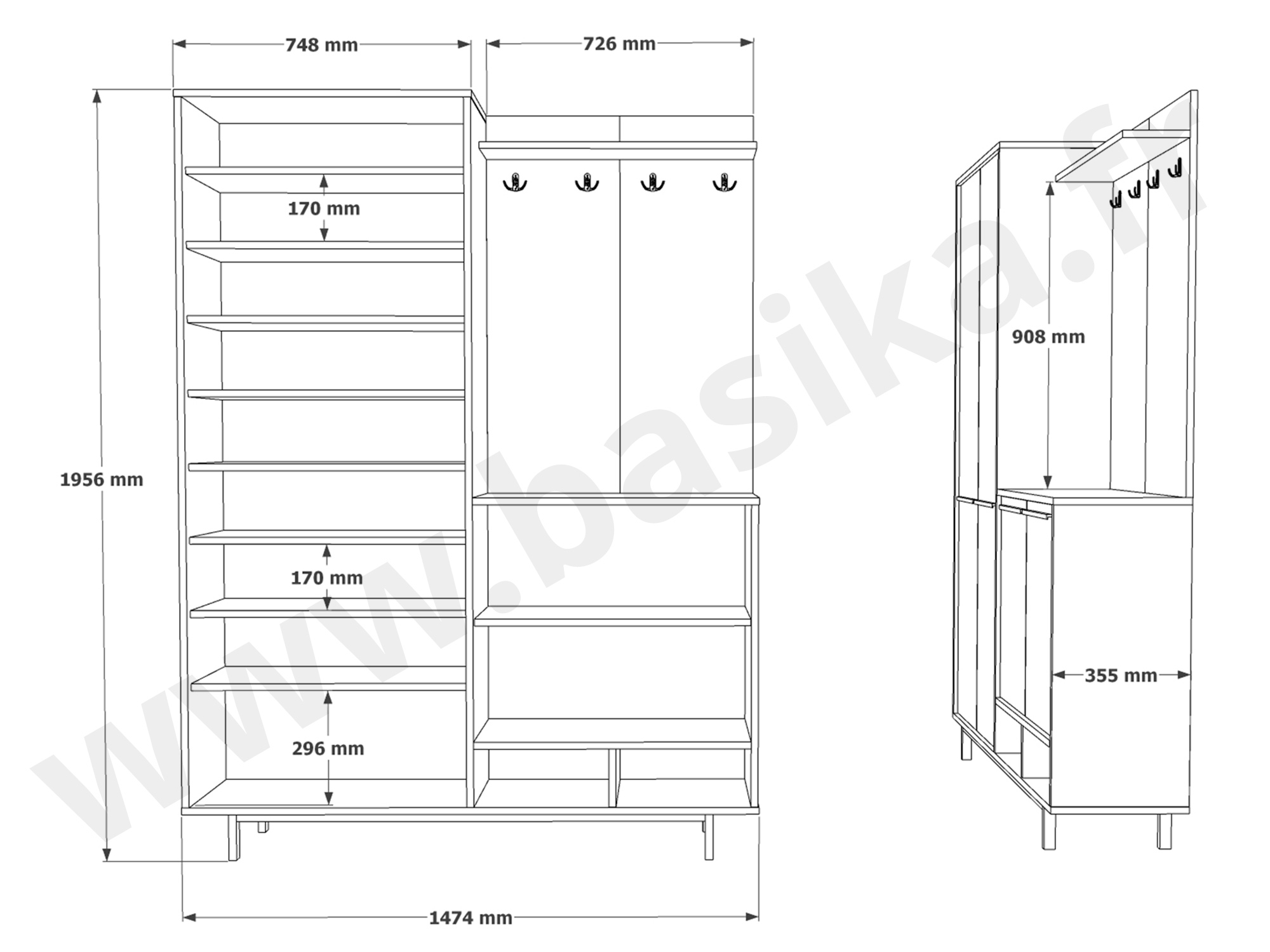 | Dimensions en cm | L148 x H196 x P35.5 |