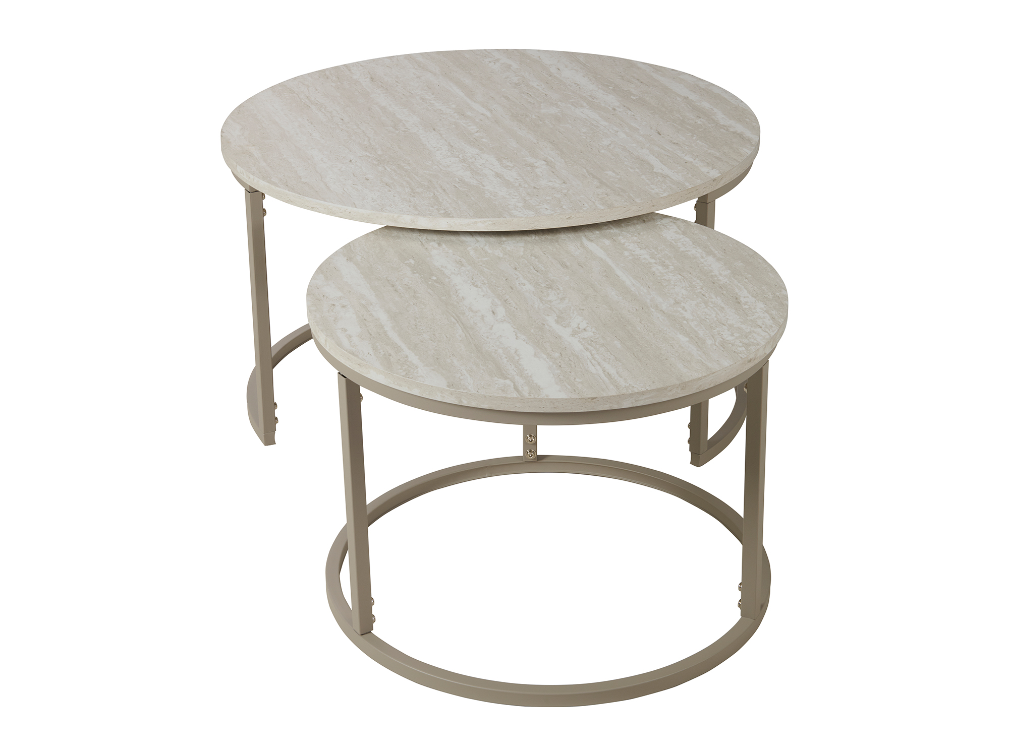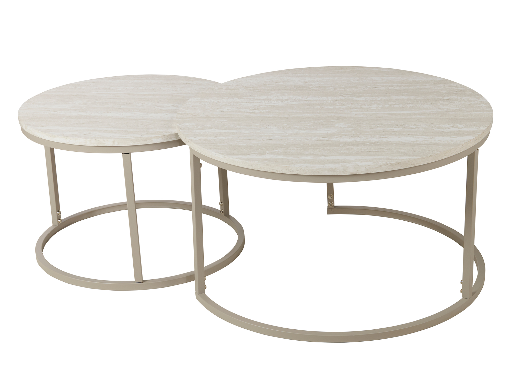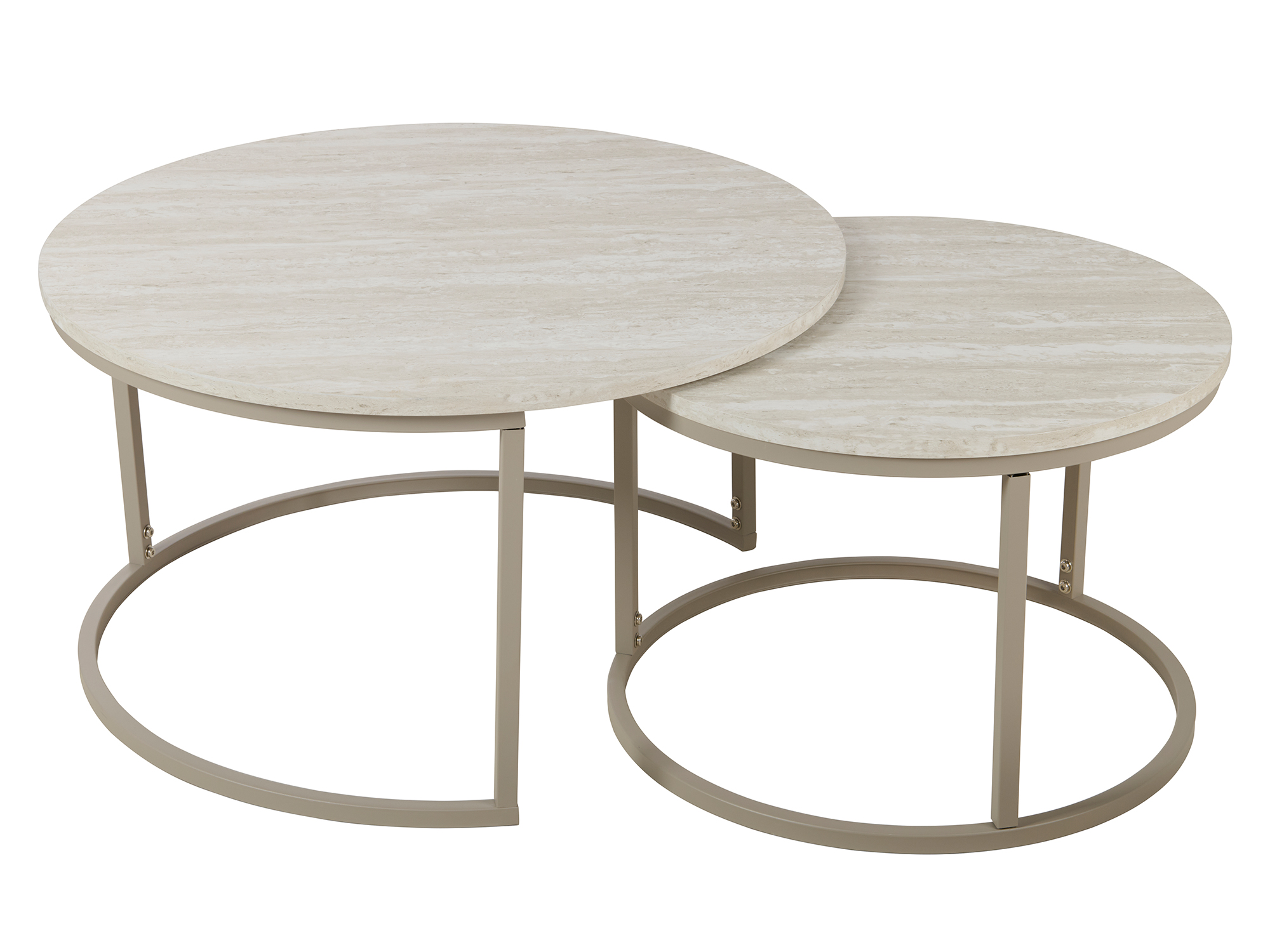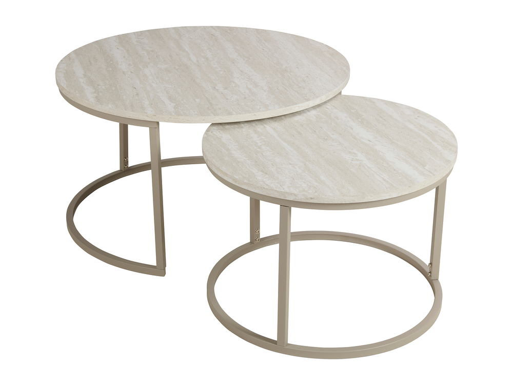 Lot de 2 tables basses. Top en MDF recouvert de décor beige travertin.
