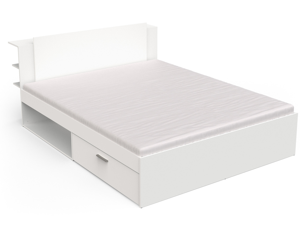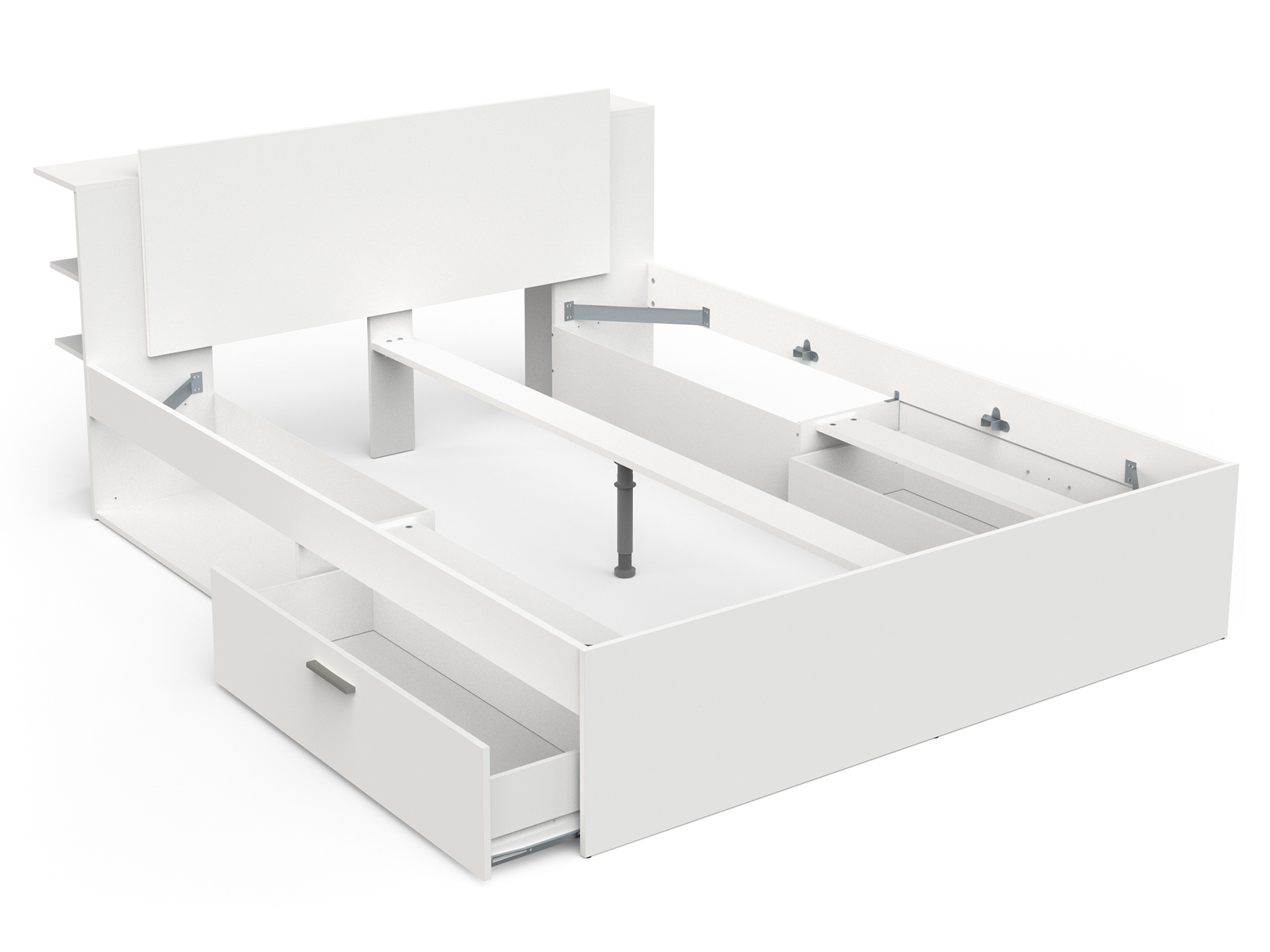 Lit 160x200 + 2 tiroirs montés sur coulisses à galets + 2 niches + environnement.