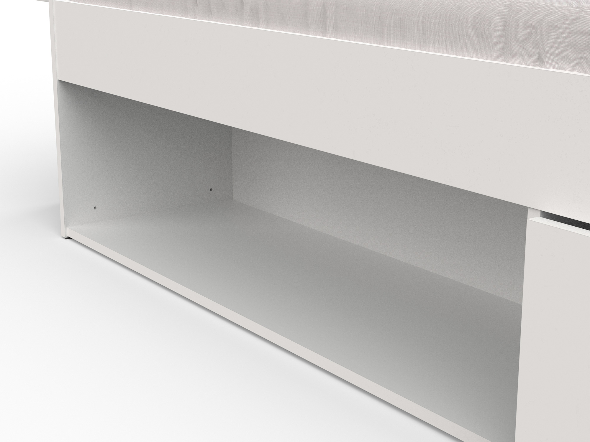Panneaux de particules 15 et 18 mm. Décor papier blanc mat. Dimensions utiles des tiroirs : 94,9 x 33,7 x 14,6 cm ,