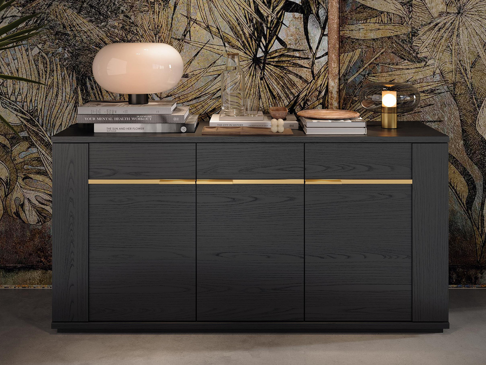 Bahut 3 portes Pegaso noir mat/doré