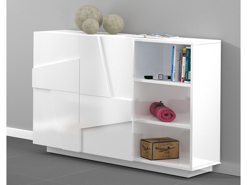 Bahut 2 portes 3 niches Ping laqué blanc brillant