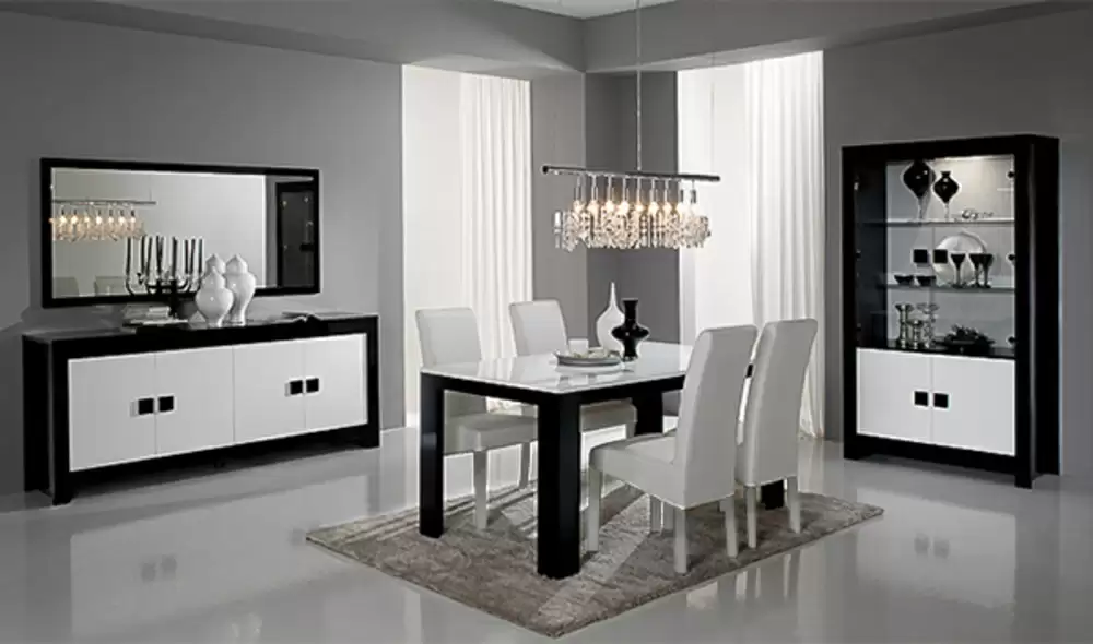 Salle a manger complete Pisa laquée bicolore noir / blanc