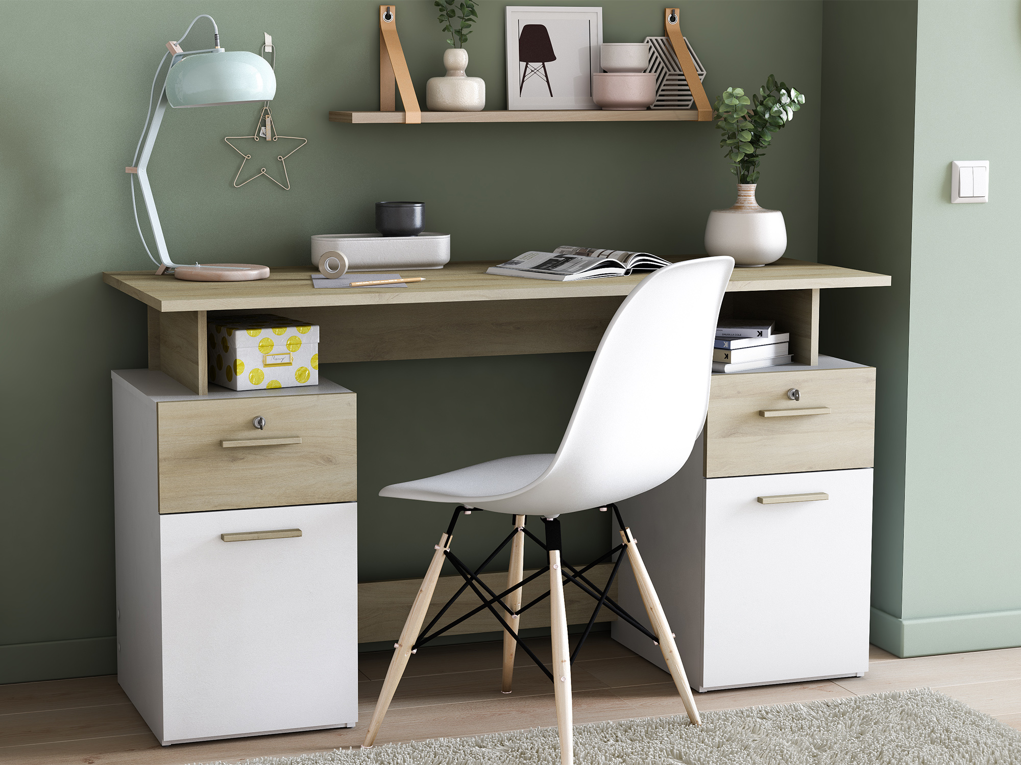 Bureau double caisson 2 portes ouvrantes et 2 tiroirs.
