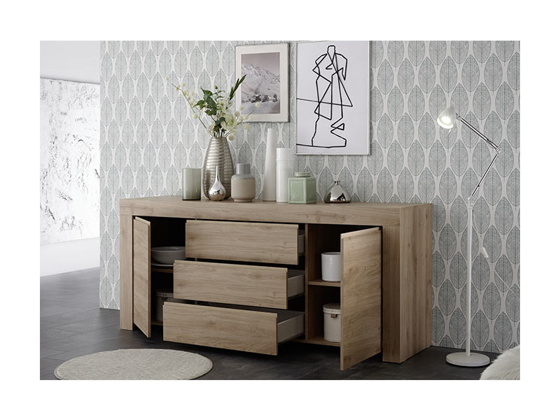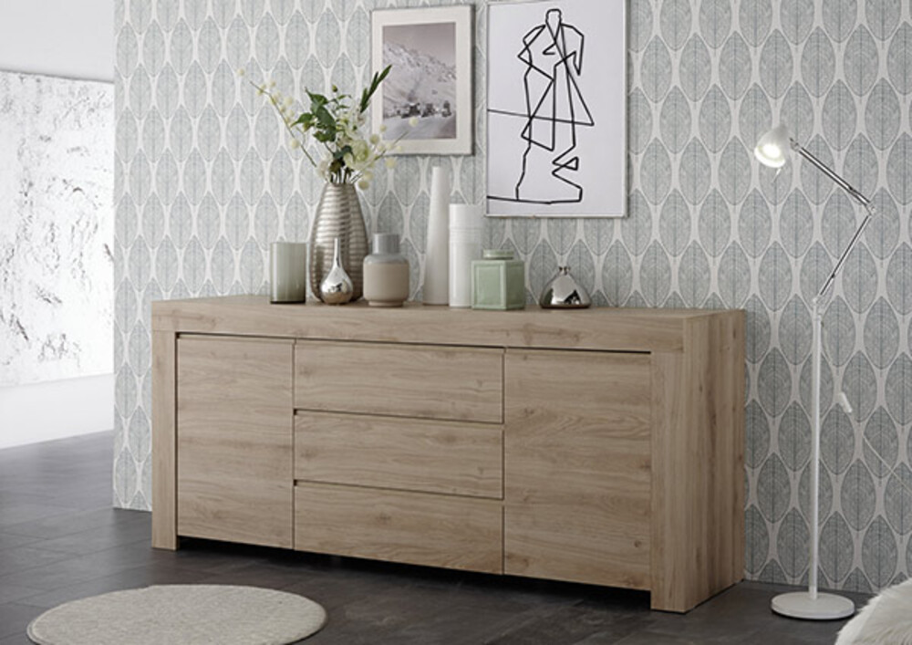 Equipé de 2 portes et 3 tiroirs, le bahut Rapallo vous permettra d'optimiser l'espace de votre séjour en y disposant votre vaisselle ou vos livres.