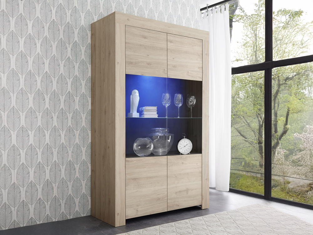 Pour lui assurer une solidité optimale, la structure et les façades de la vitrine Rapallo ont été réalisées en aggloméré de bois de 16mm d’épaisseur. Les pieds du meuble sont en plastique. De plus, la vitrine de séjour Rapallo couleur chêne cadiz vous sera livrée en 2 colis que vous pourrez assembler facilement en vous aidant de la notice. Modernisez votre intérieur en choisissant les autres éléments de cette gamme, disponibles séparément sur notre site. Ce meuble doit être fixé au mur.