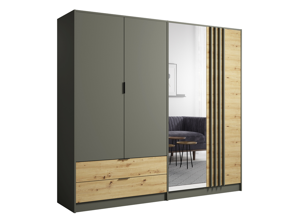 Armoire 4 portes dont 1 miroir et 2 tiroirs.