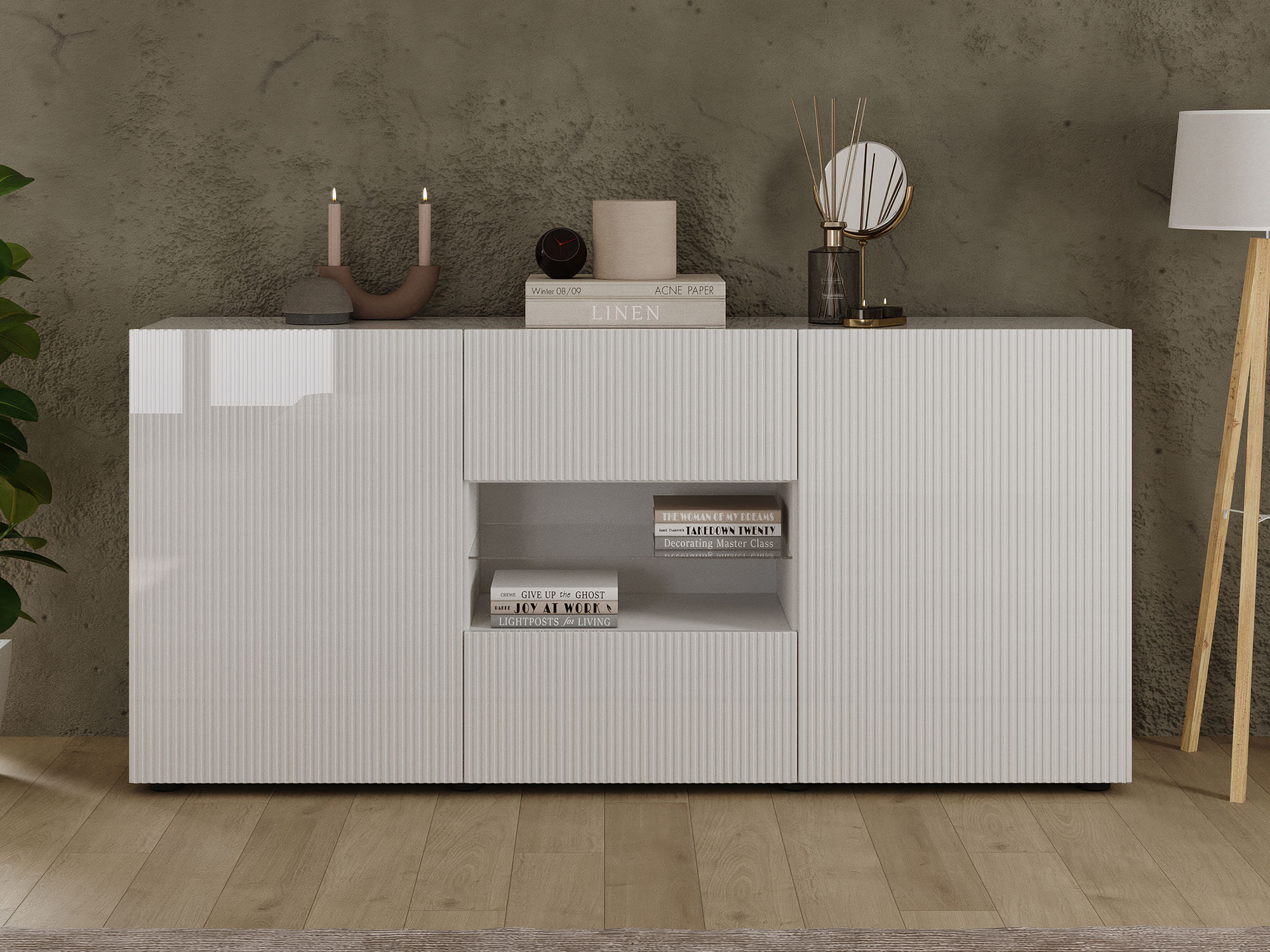 Le design rainuré des portes ajoute une touche contemporaine.