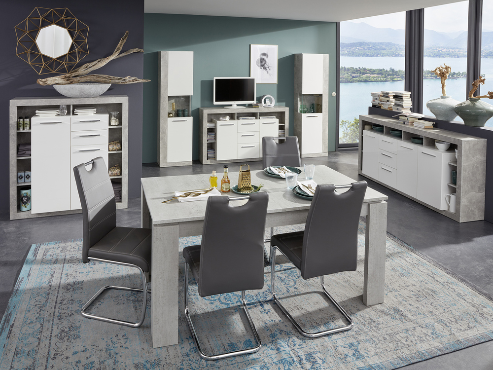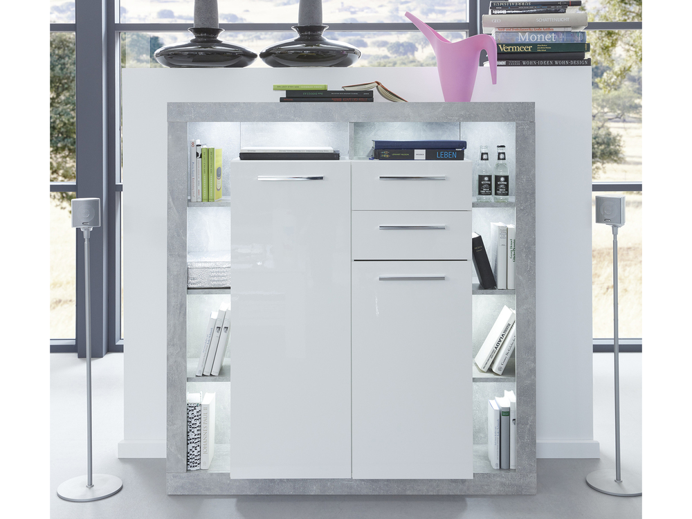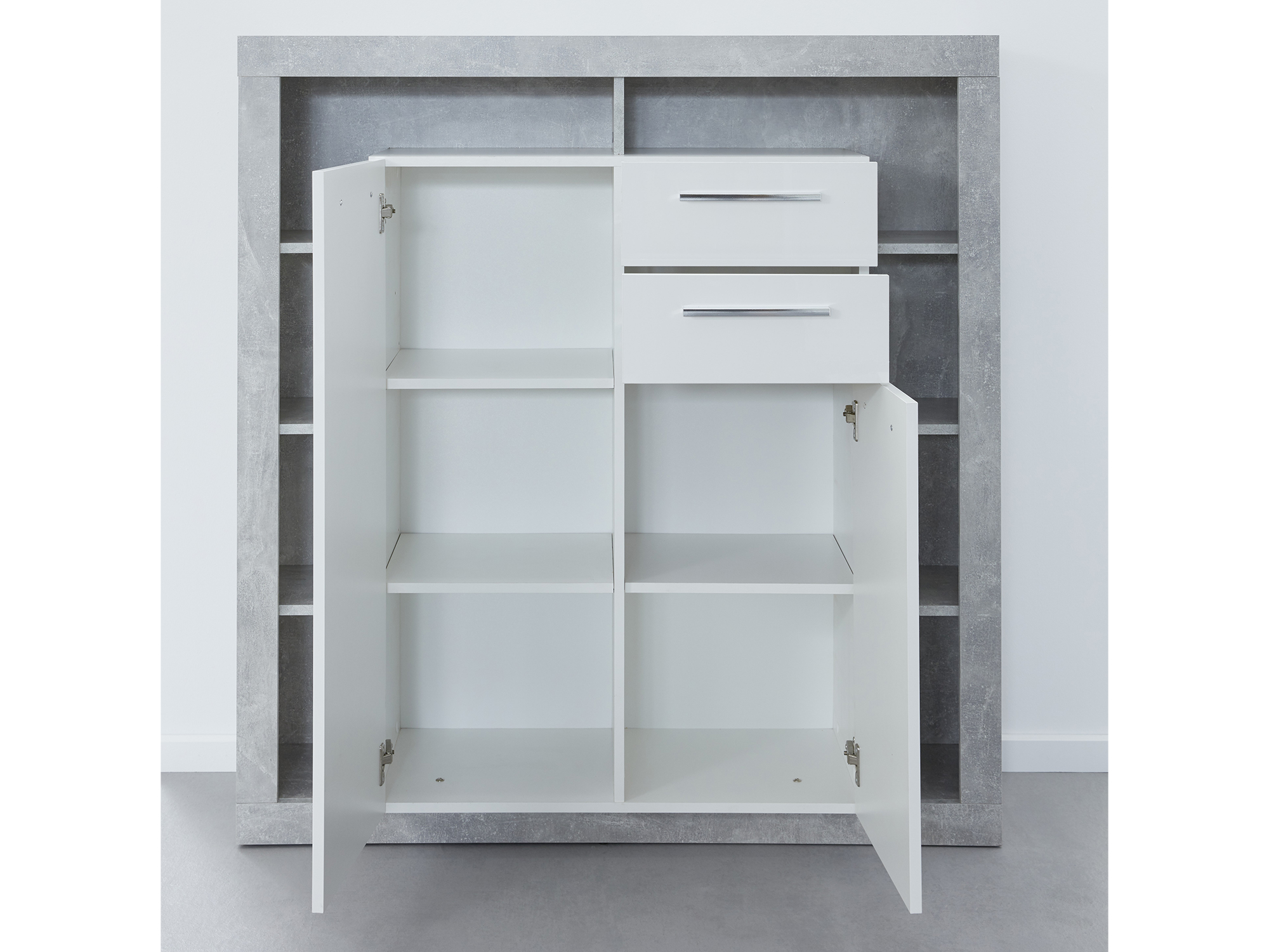 Meuble de rangement 2 portes 2 tiroirs Rock gris pierre/blanc brillant