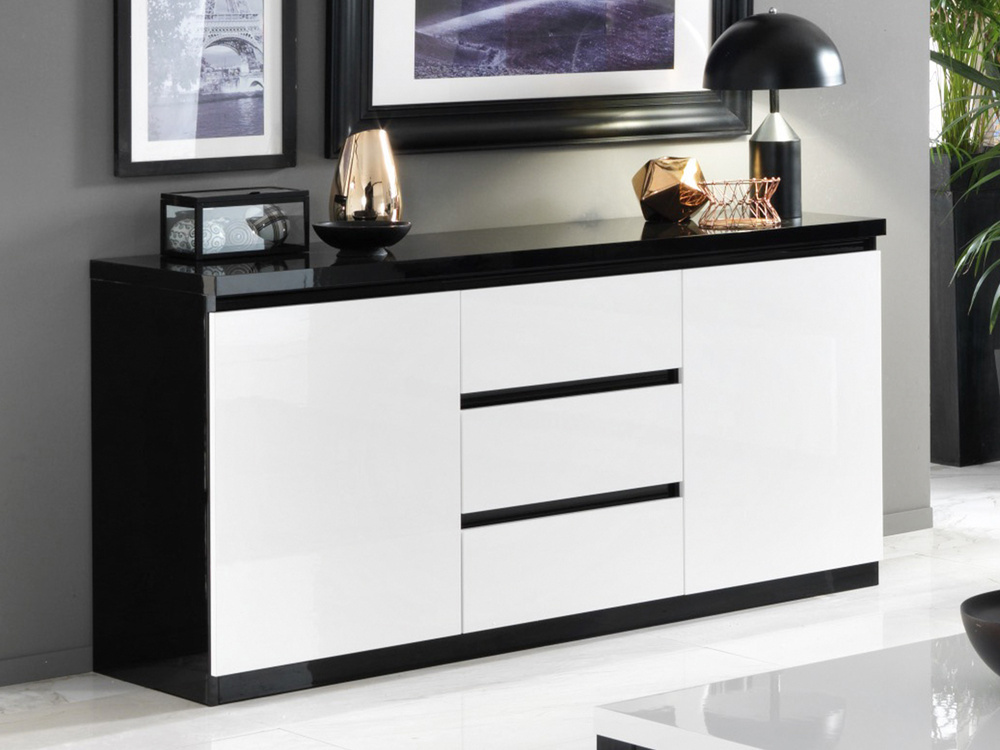 Profitez du savoir-faire italien en matière de meubles pour redécorer votre salle à manger avec style ! Le bahut 2 portes et 3 tiroirs Roma bicolore noir et blanc est un meuble design laqué qui ne manquera pas d’attirer l’attention de vos convives !