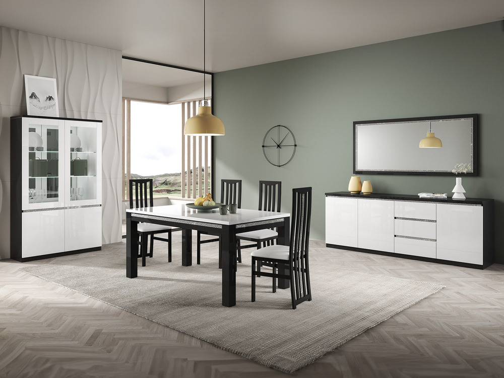Laissez-vous séduire par le miroir Roma laqué bicolore noir et blanc de 180cm, avec son aspect unique et original. Il créera une ambiance zen et moderne dans votre séjour ou salle à manger. Ce modèle existe aussi en 140cm de largeur sur notre site.