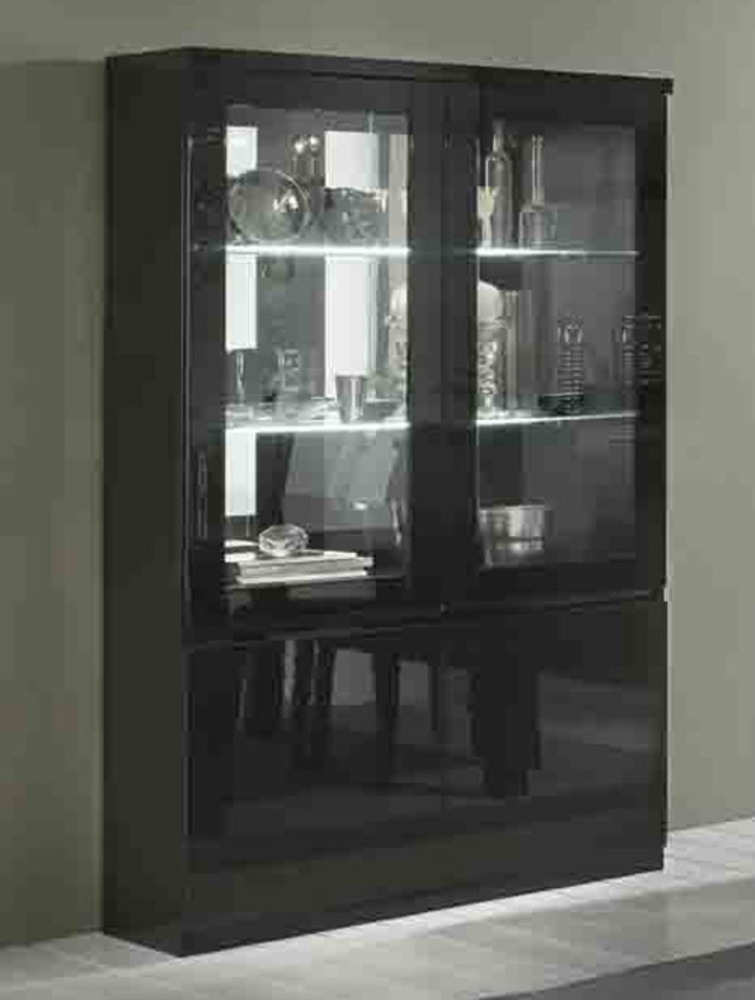 Vitrine moderne en laqué noir.Leds inclus sur les étagères.