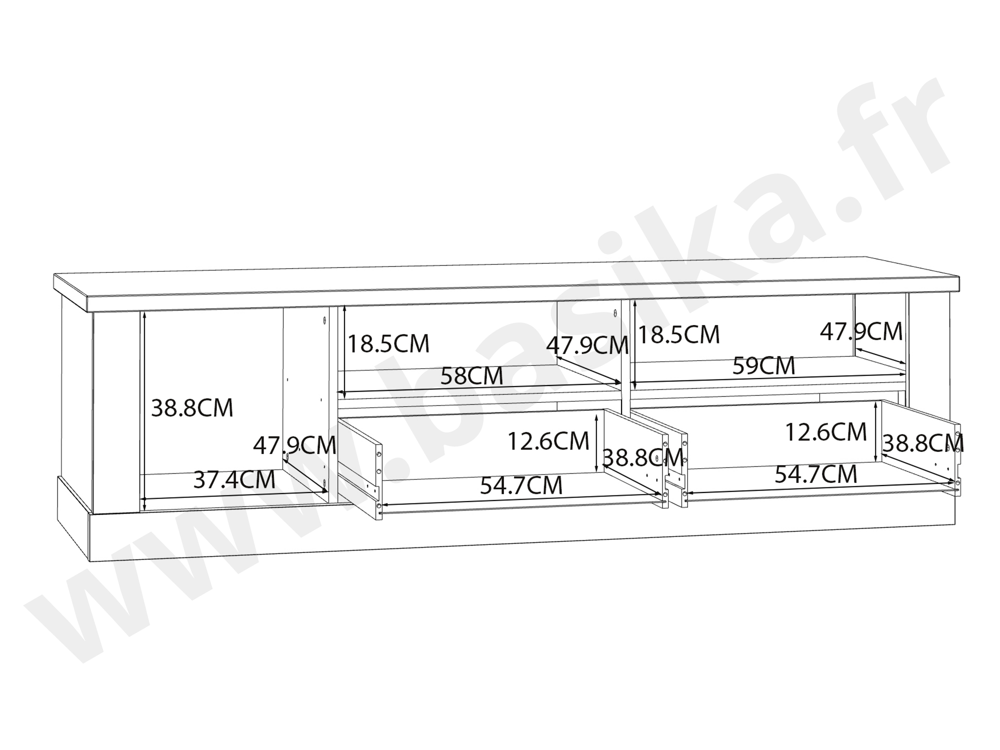 Meuble TV 1 porte,2 tiroirs et 2 niches.