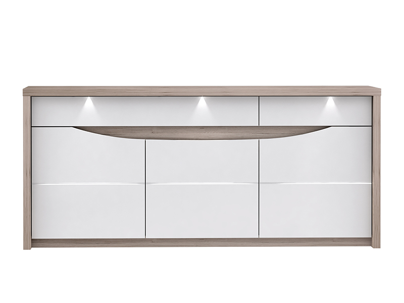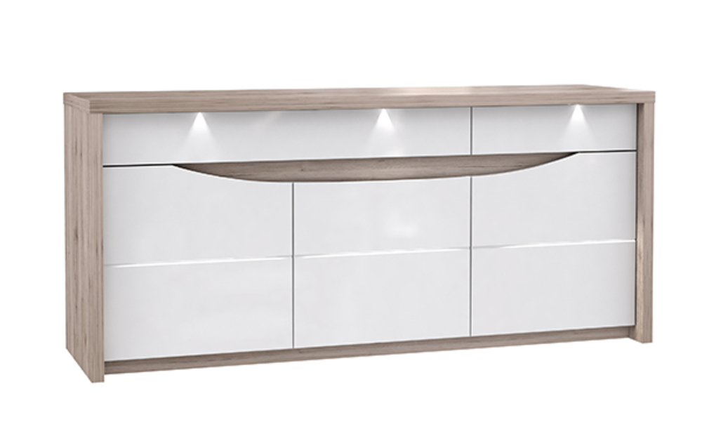 Bahut 3 portes et 2 tiroirs Saint tropez chene cendré/blanc brillant