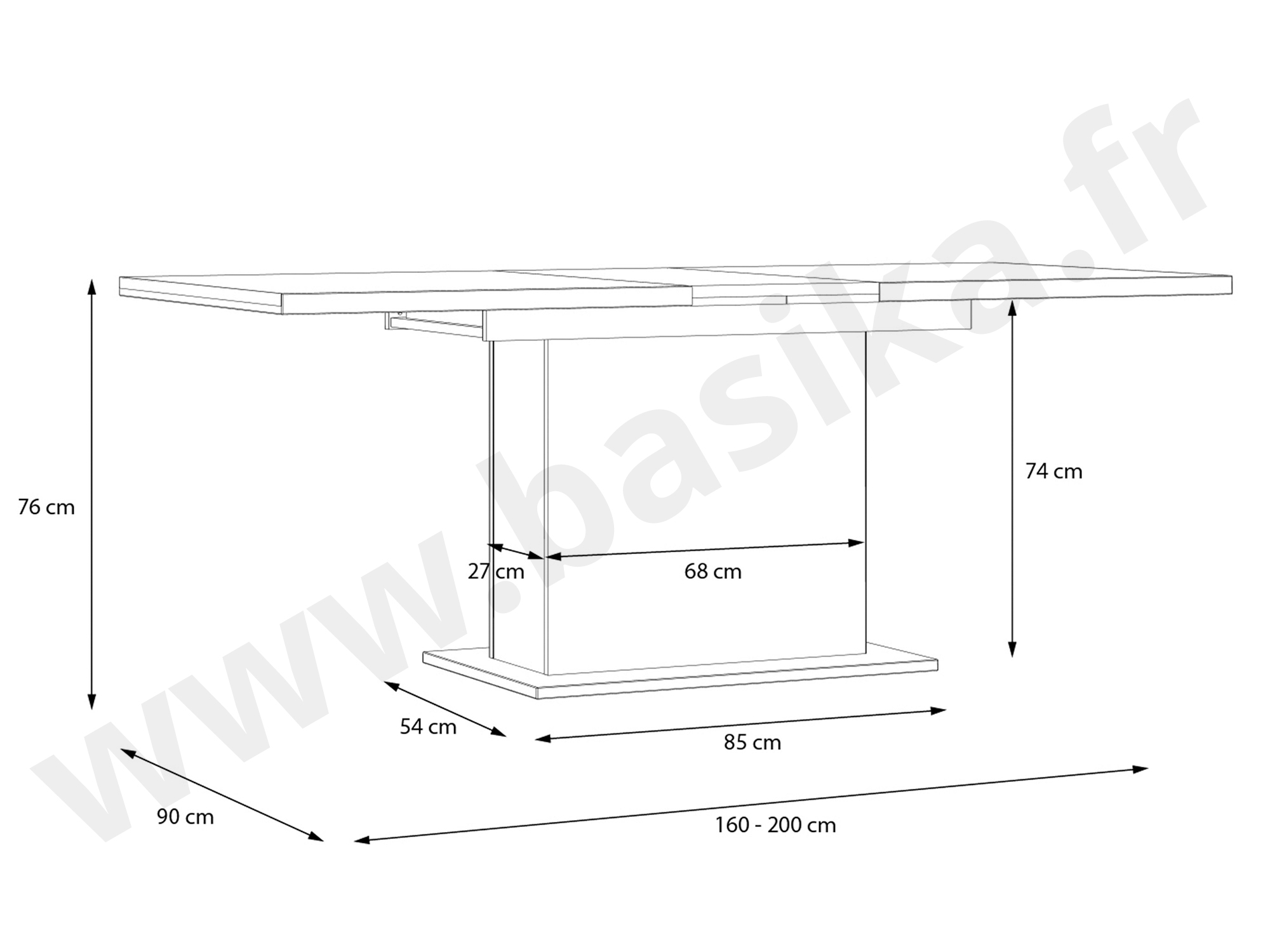 Table de repas extensible de 160 à 206.6 cm.