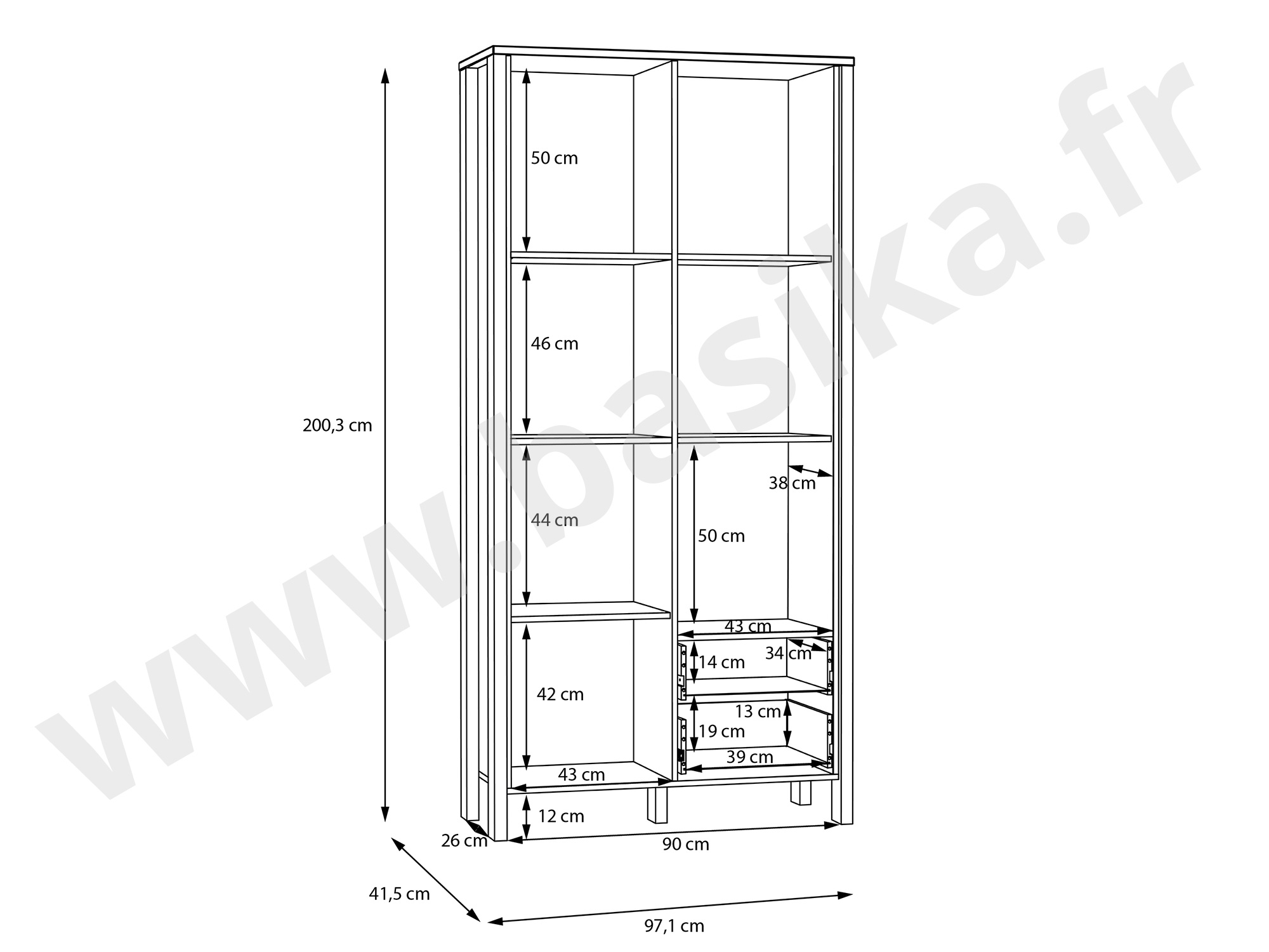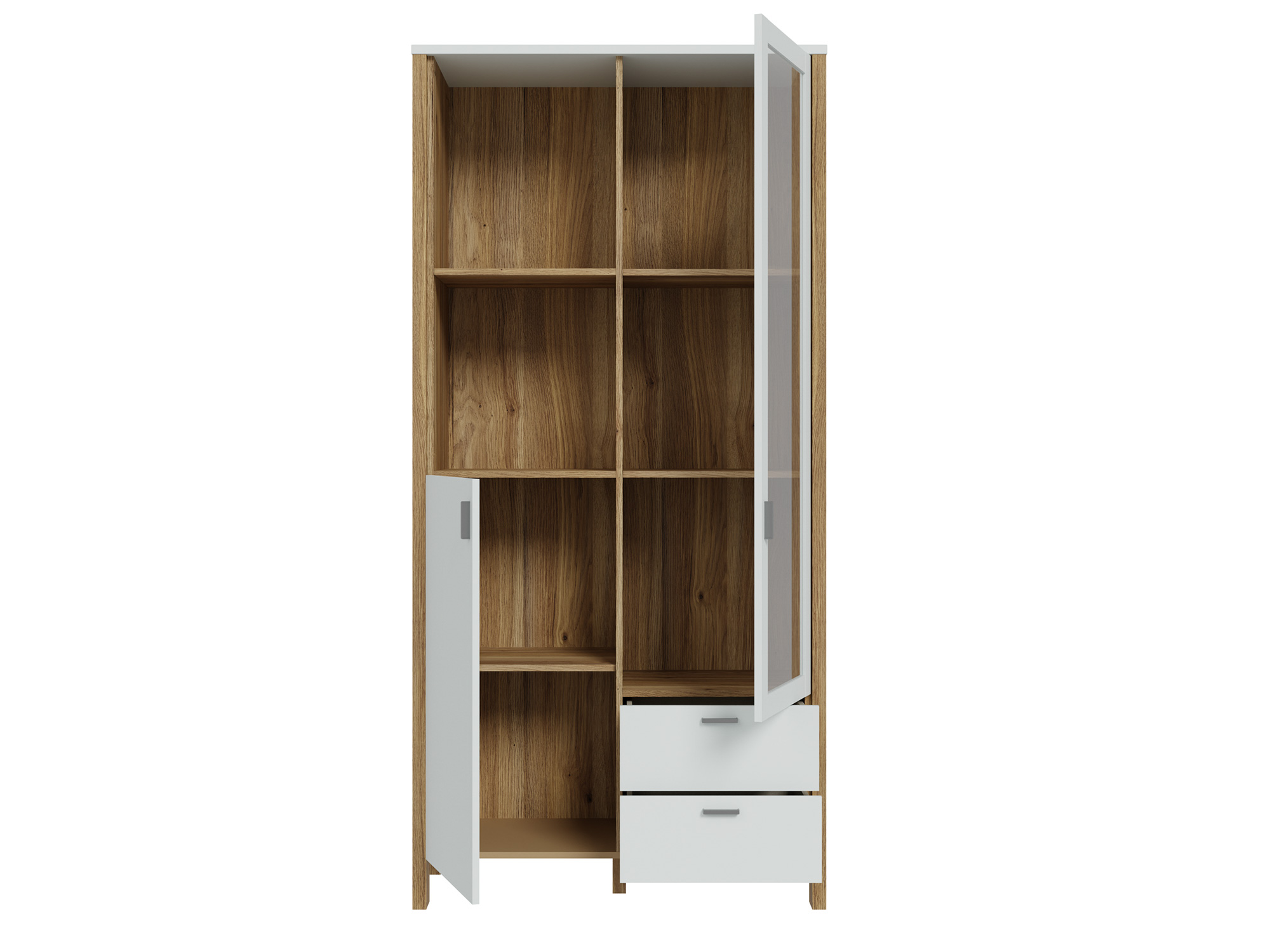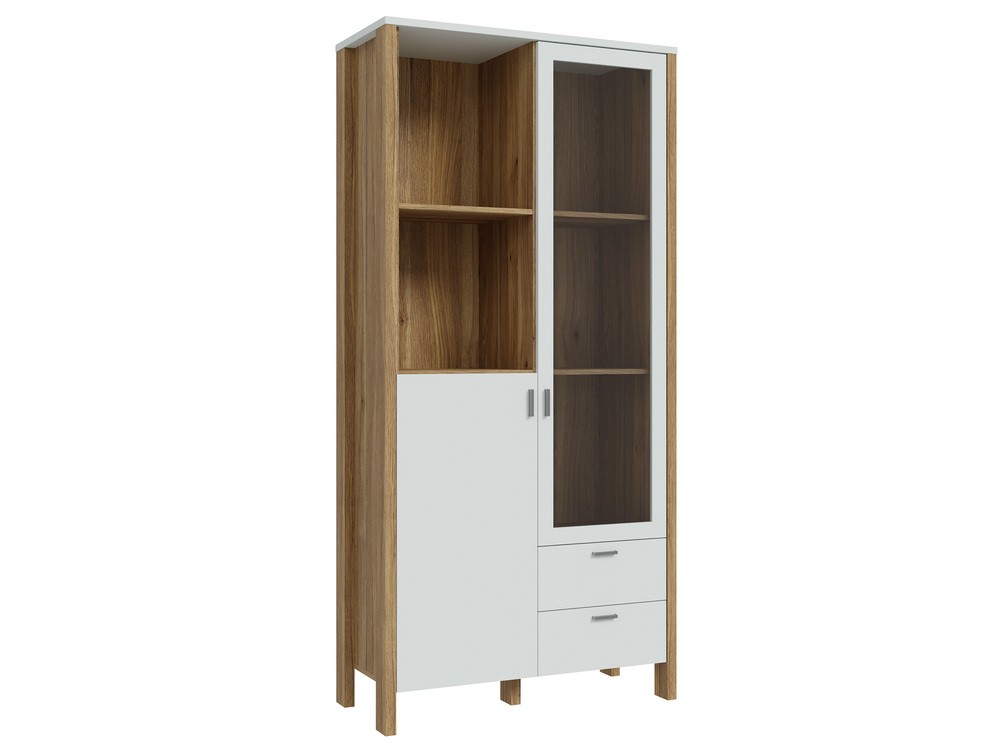 Vitrine 2 portes dont 1 vitrée et 2 tiroirs.