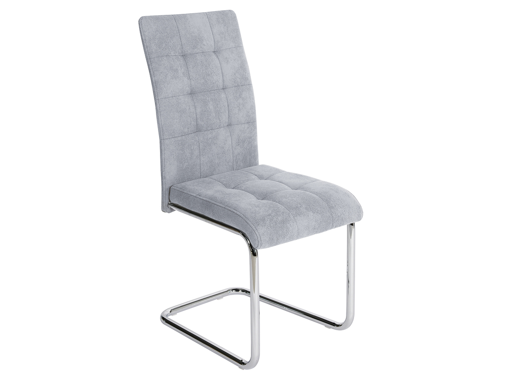 Structure métallique. Assise et dosier en revêtement polyuréthane. Pieds ronds chromés. A assembler.