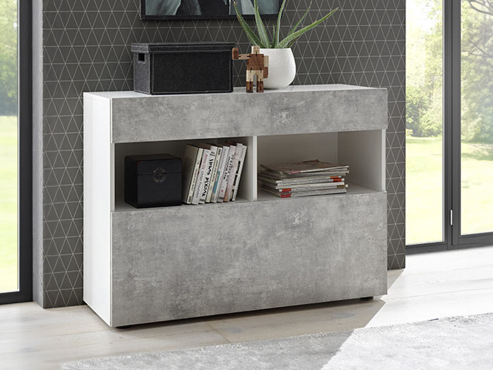 Bahut 1 tiroir 1 abattant Sardegna blanc/béton