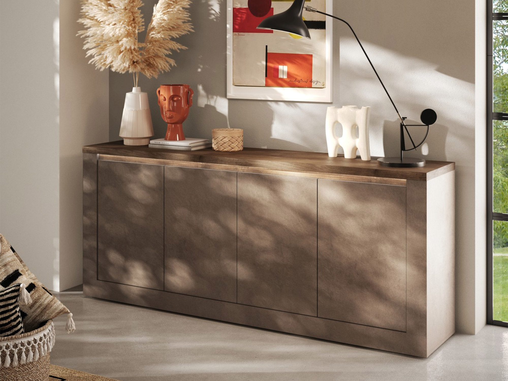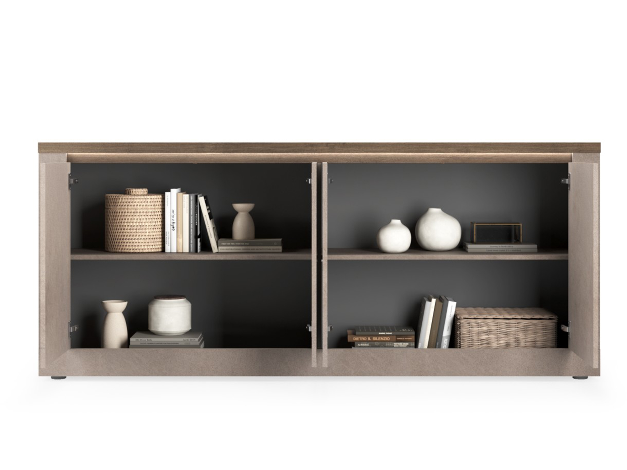 Structure et façades en agglomere de bois, épaisseur 16mm, finition blanc laqué brilliant/chêne bois naturel Cadiz.