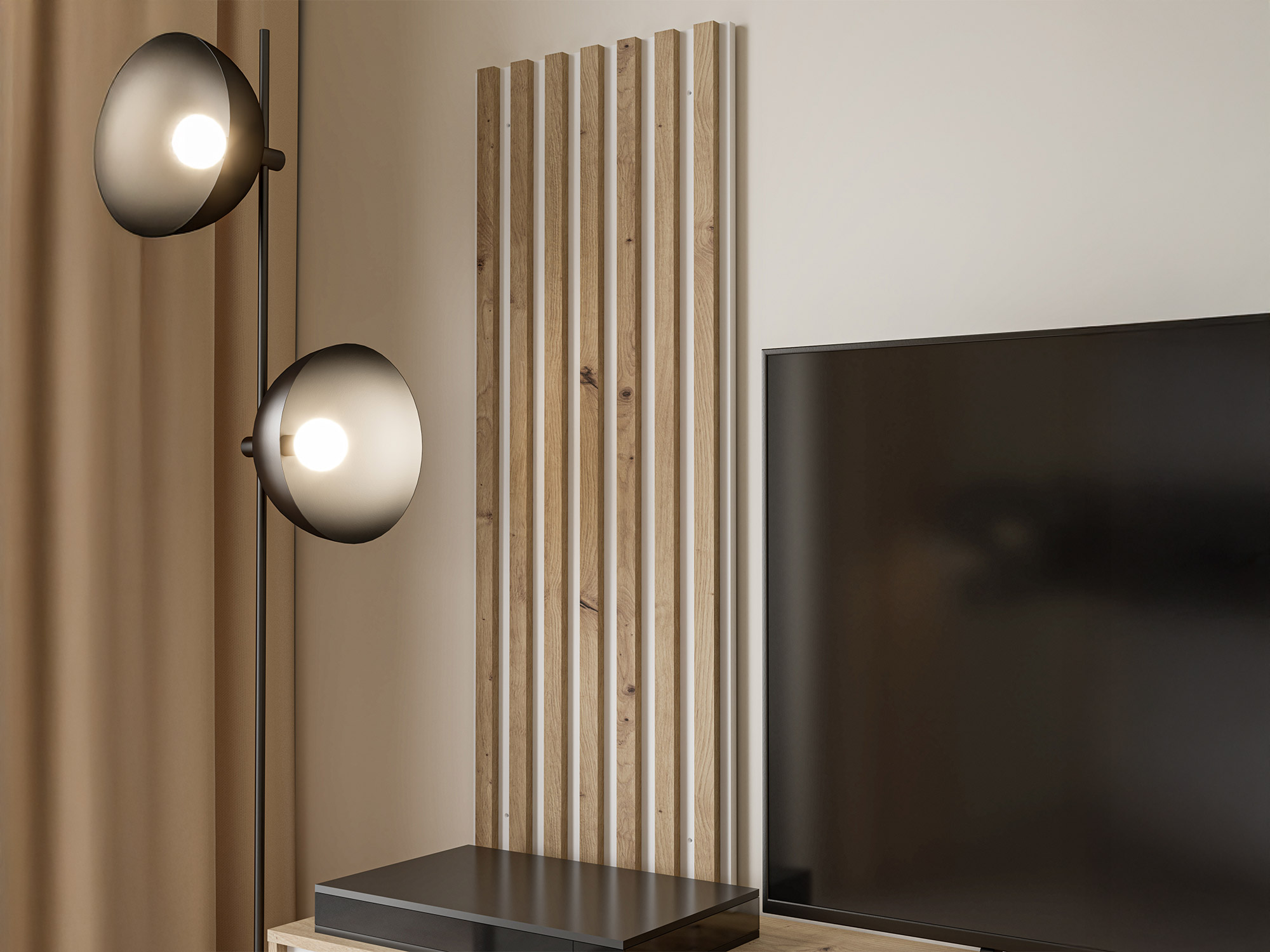 Panneaux de particules revetus de décor chene artisan et blanc.