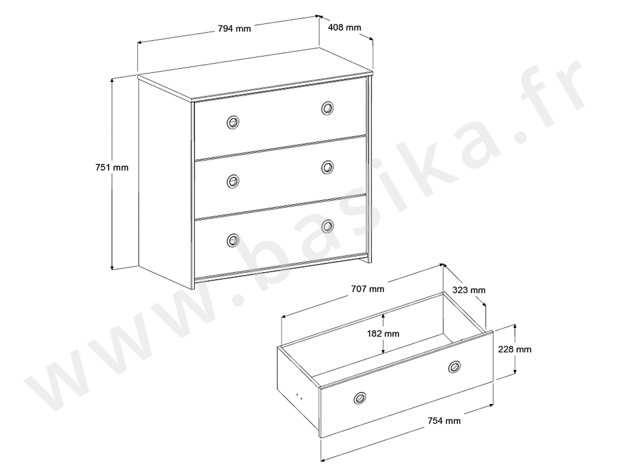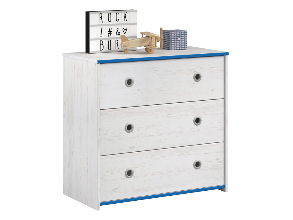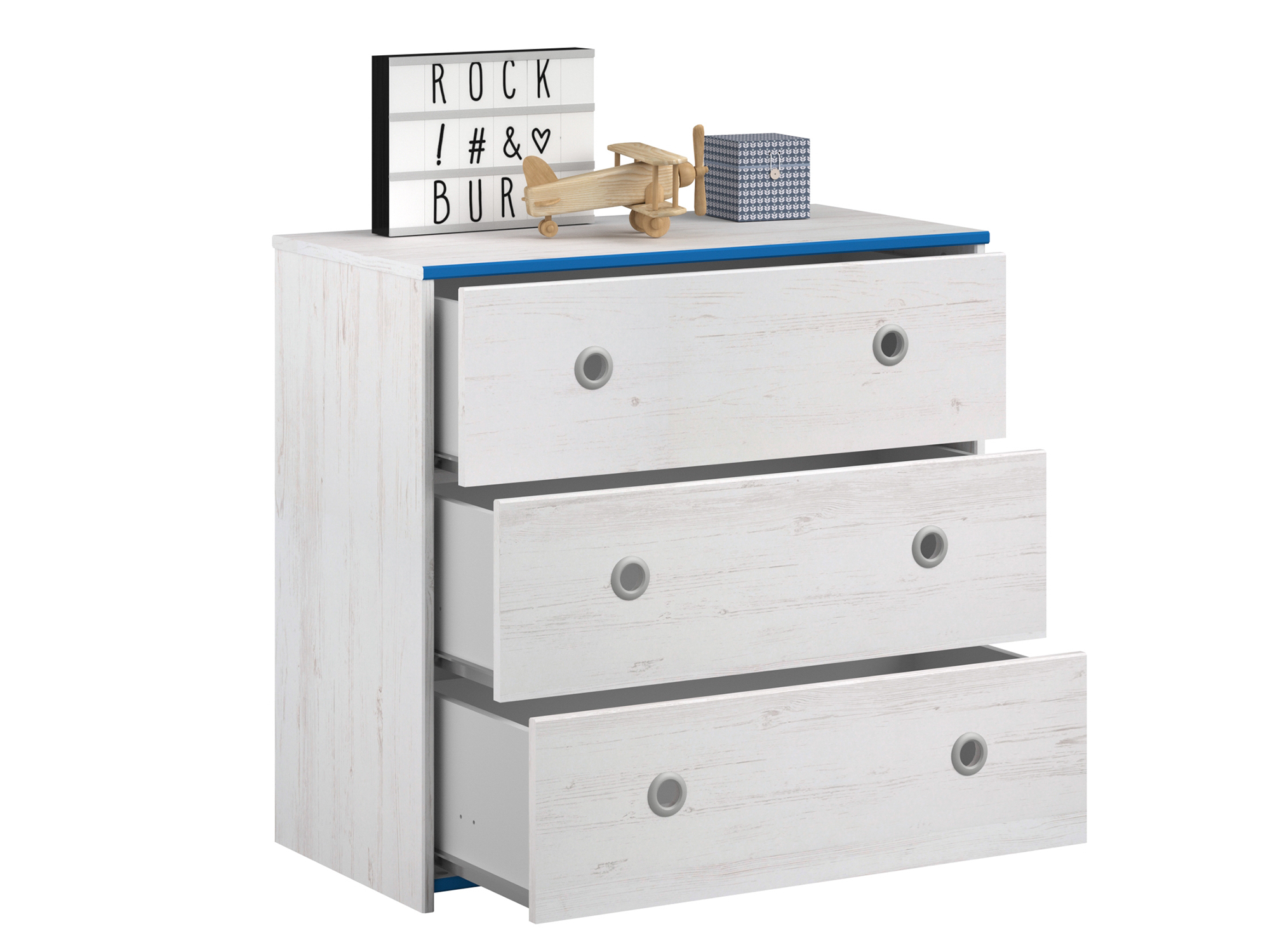 Commode 3 tiroirs Smoozy chene blanchi/rose ou bleu