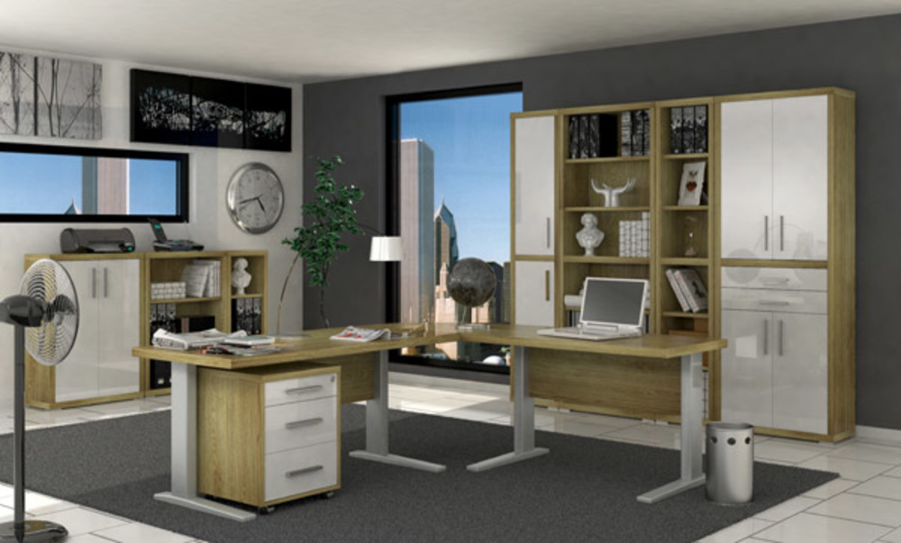 Bureau manager Stampa chene veiné/blanc brillant