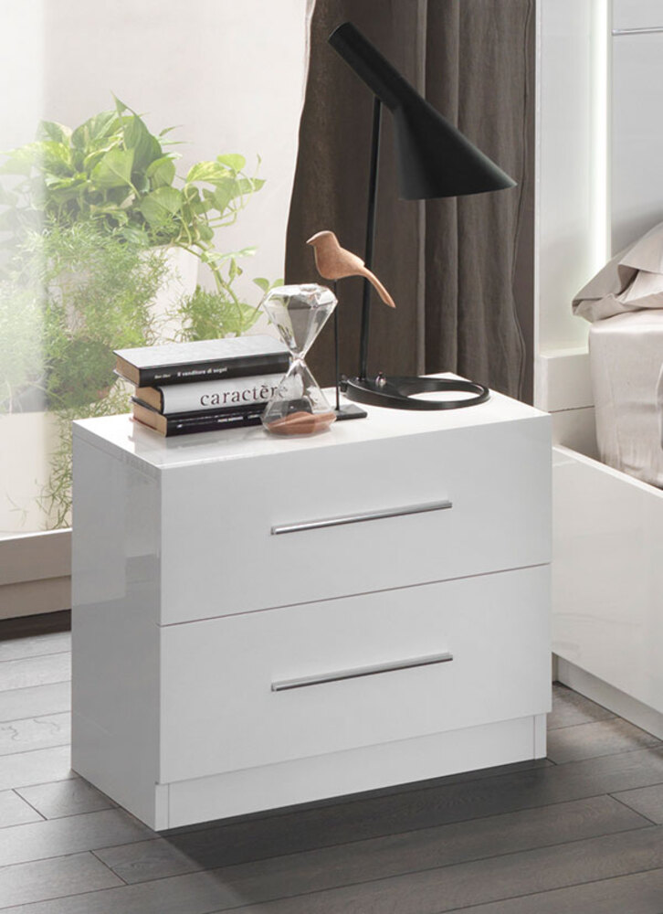 Ce chevet 2 tiroirs Star vous sera d’une grande utilité. Esthétique à souhait avec sa finition blanc laqué, il s’accordera aisément avec tous les intérieurs.