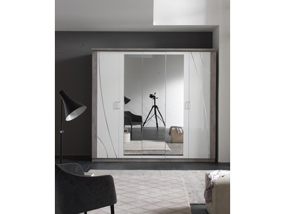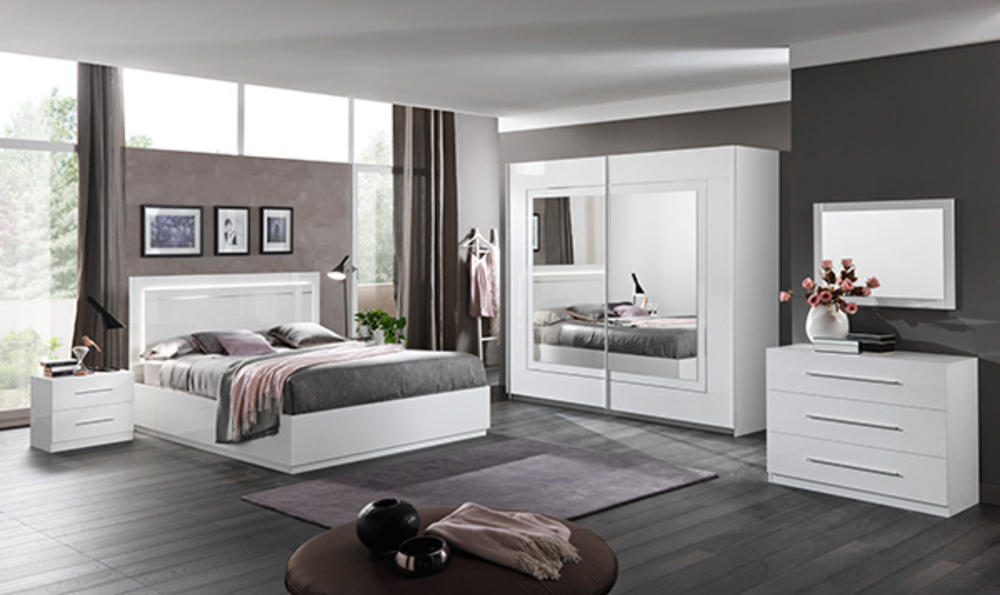 Panneaux de particules de bois. Panneaux ecologiques catégorie E1.Epaisseur des panneaux 18 mm. Décoration plastique chromée. Panneaux laqués brillant. Les matériaux utilisés pour le vernissage sont atoxiques et anallergiques. Le vernissage est à rayon UV.Provenance ITALIE.A assembler.