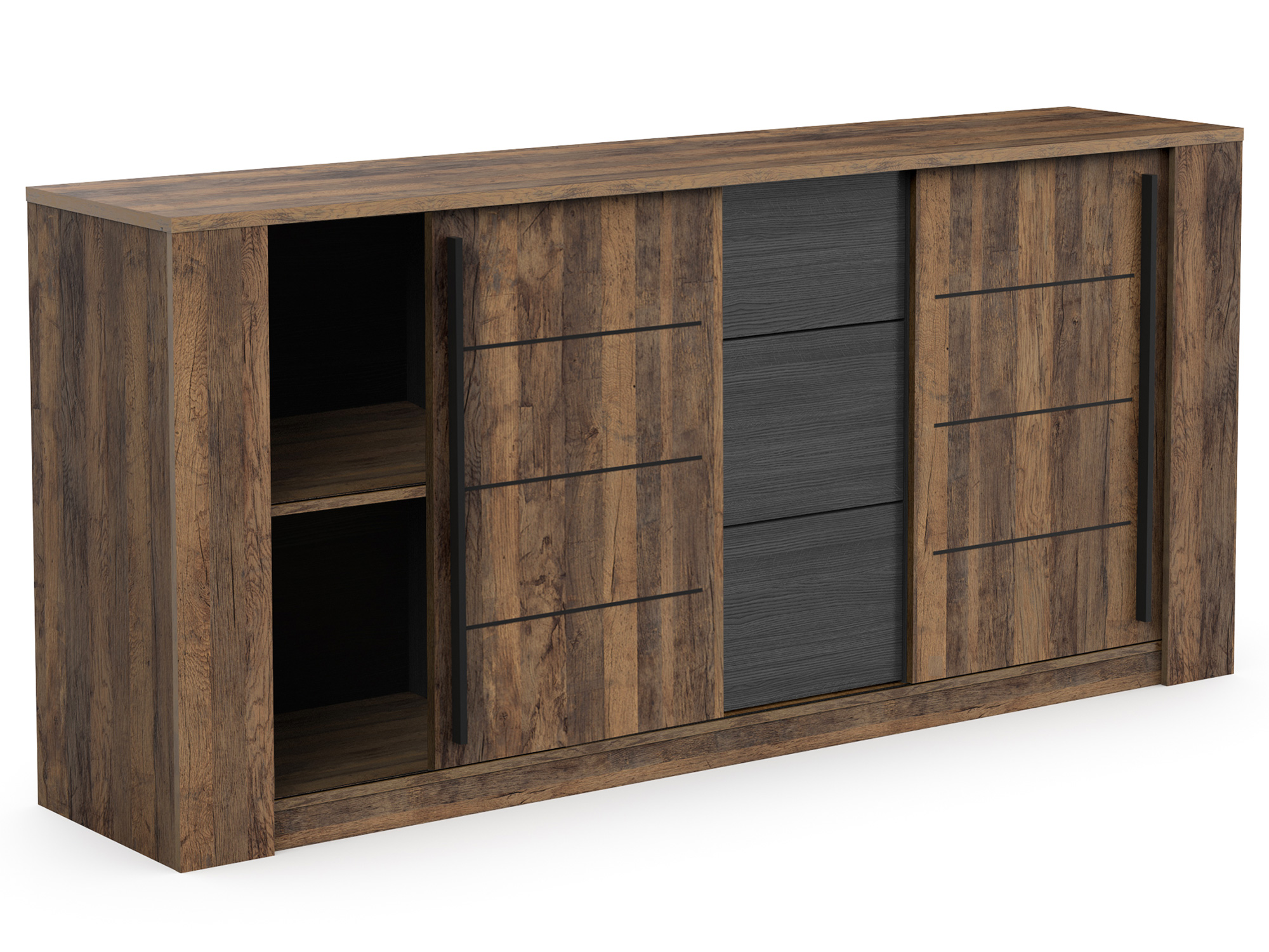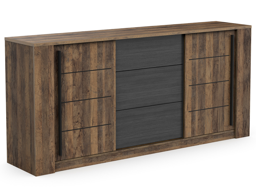 Bahut 2 portes coulissantes 3 tiroirs Stencil