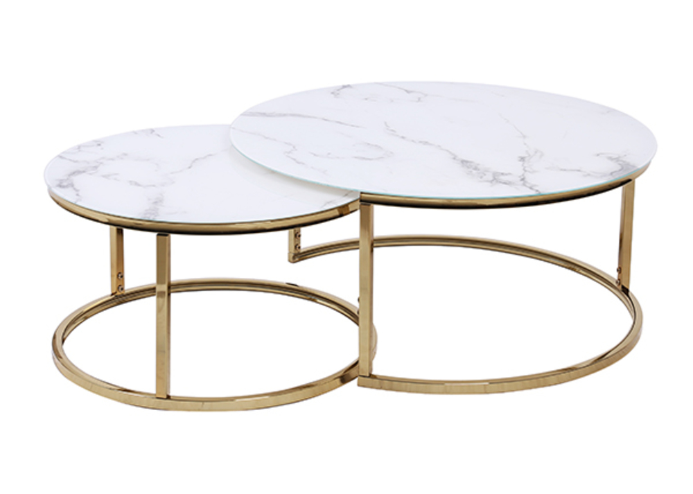 Dessus en verre imitation marbre Piètement métal doré. A assembler.