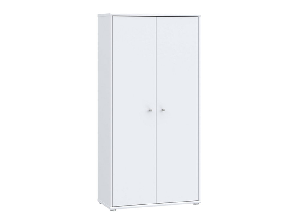Panneaux de particules revetus de décor imitation blanc.Piètement en plastique imitation aluminium.