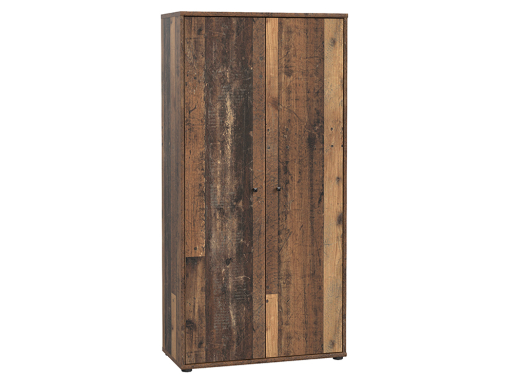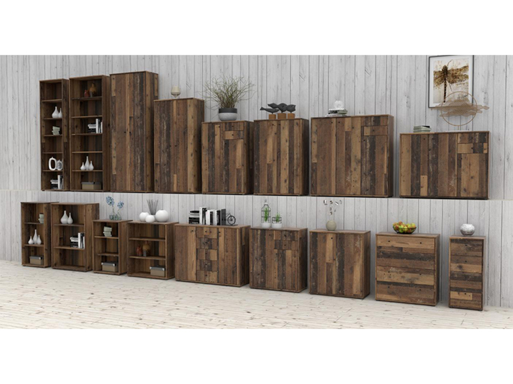 Panneaux de particules revetus de décor imitation vintage.Piètement en plastique imitation noir.