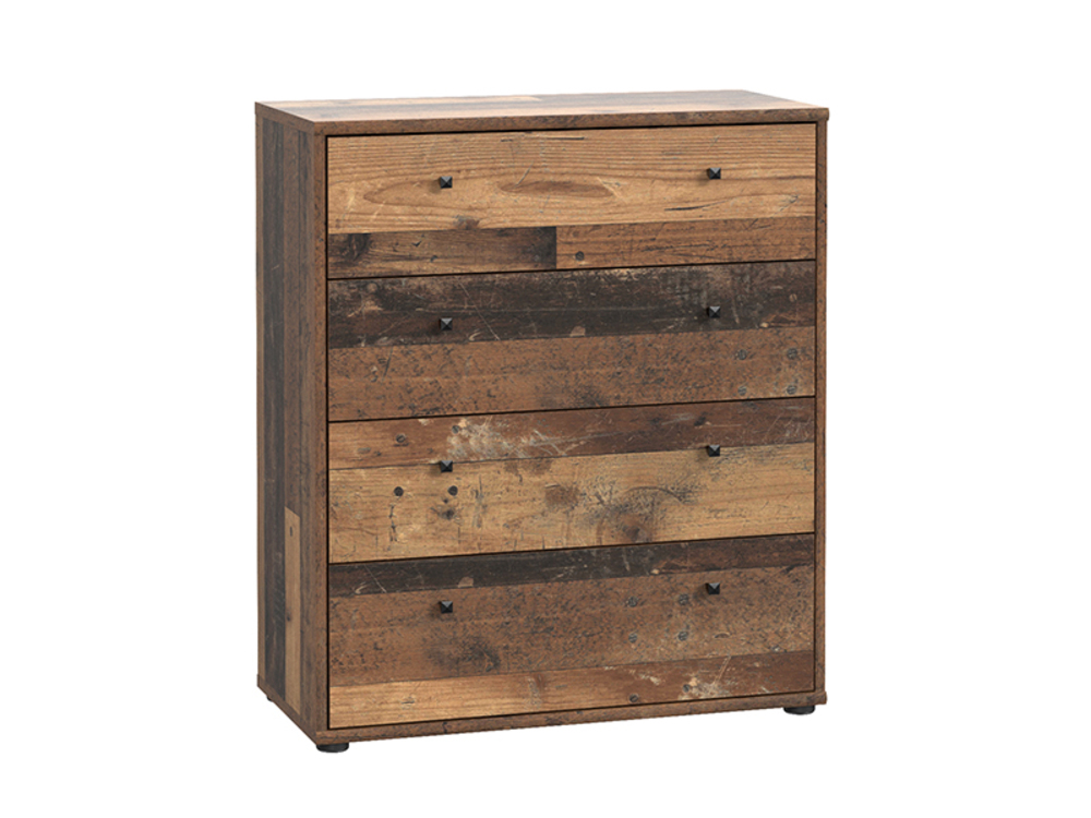 Panneaux de particules revetus de décor imitation vintage.Piètement en plastique imitation noir.